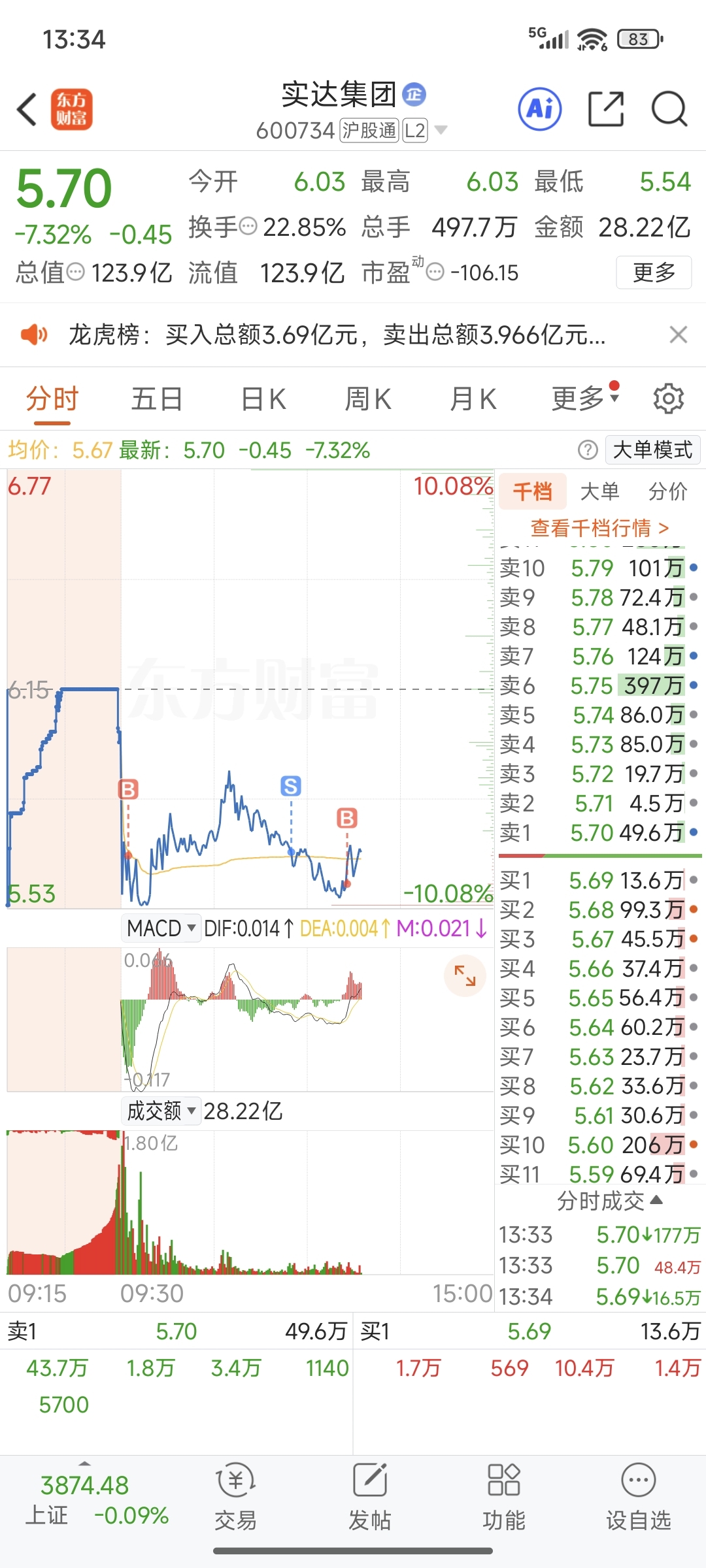 $实达集团(SH600734)$ 大家加油