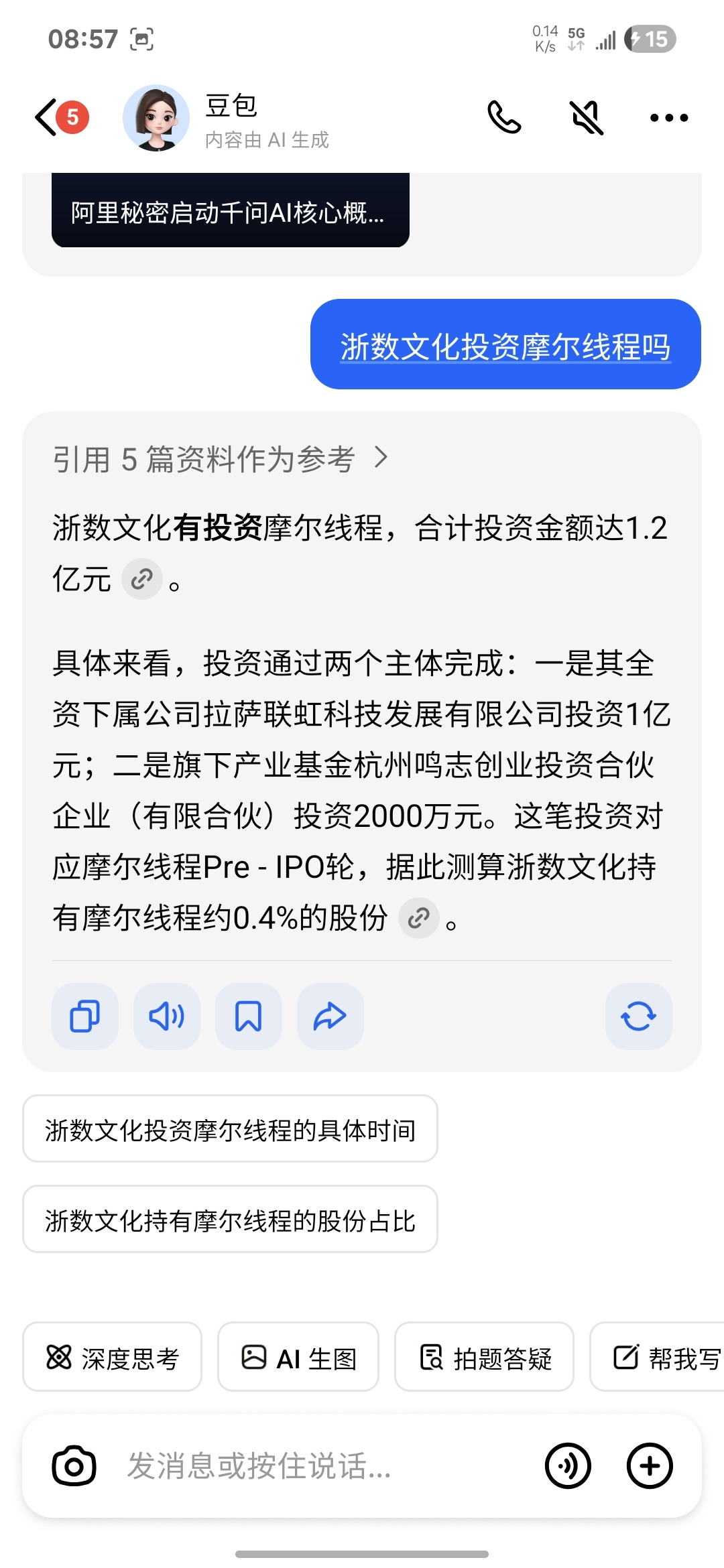 浙江的实达投资摩尔线程,与阿里深度合作。