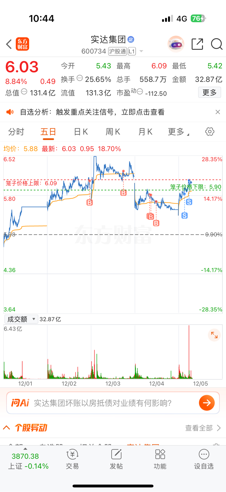 $实达集团(SH600734)$ 前天高空买了,昨天加仓吃地板,今天回板清仓,小赚,留下的祝大家发财!!