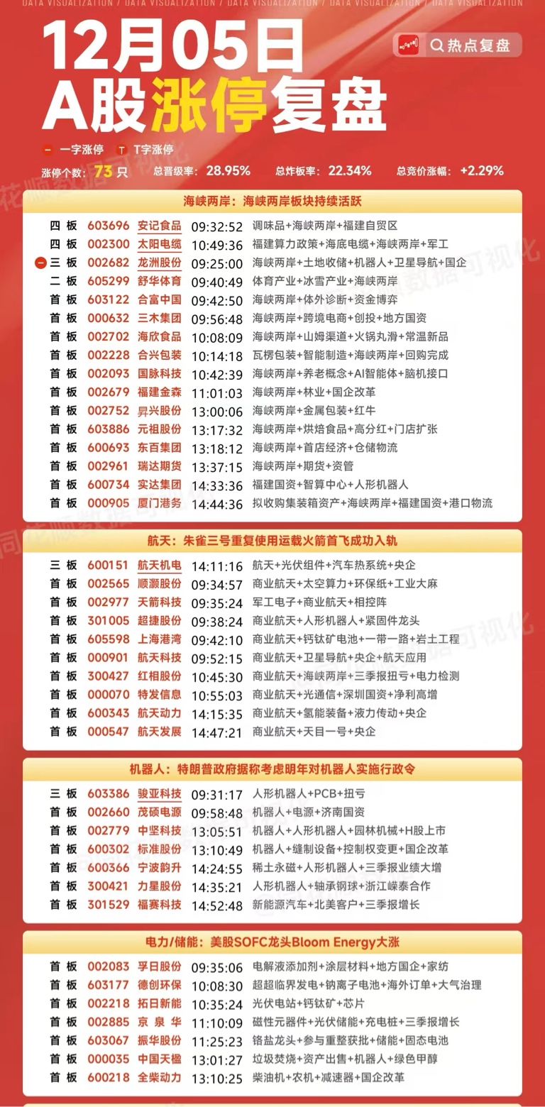 12月5日 各大板块涨停个股&游资龙虎榜复盘