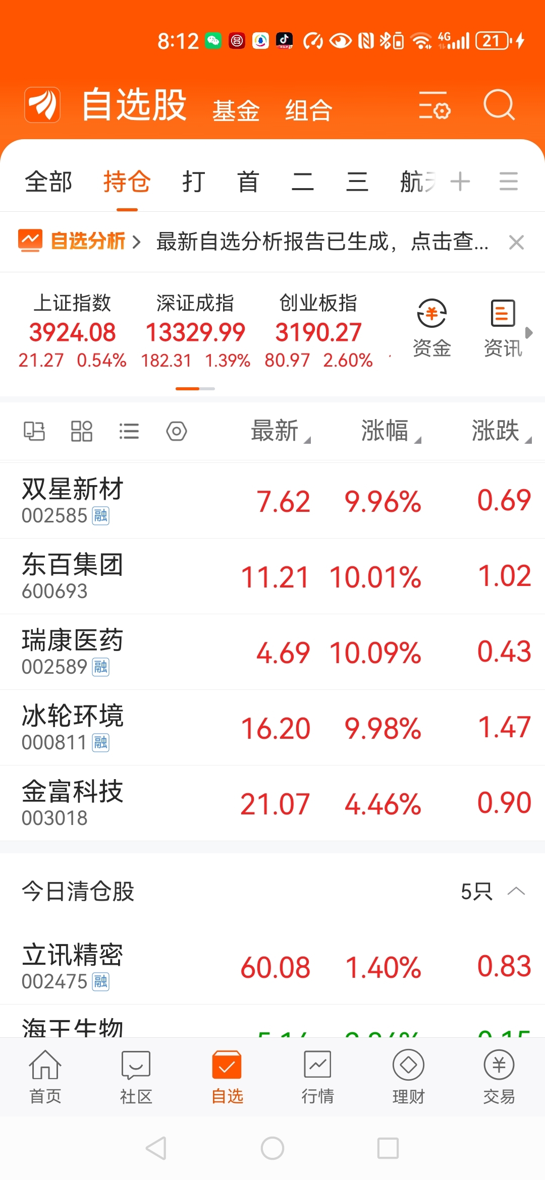 今作:双星一字未动,打板东百、瑞康、冰轮、加仓金福。