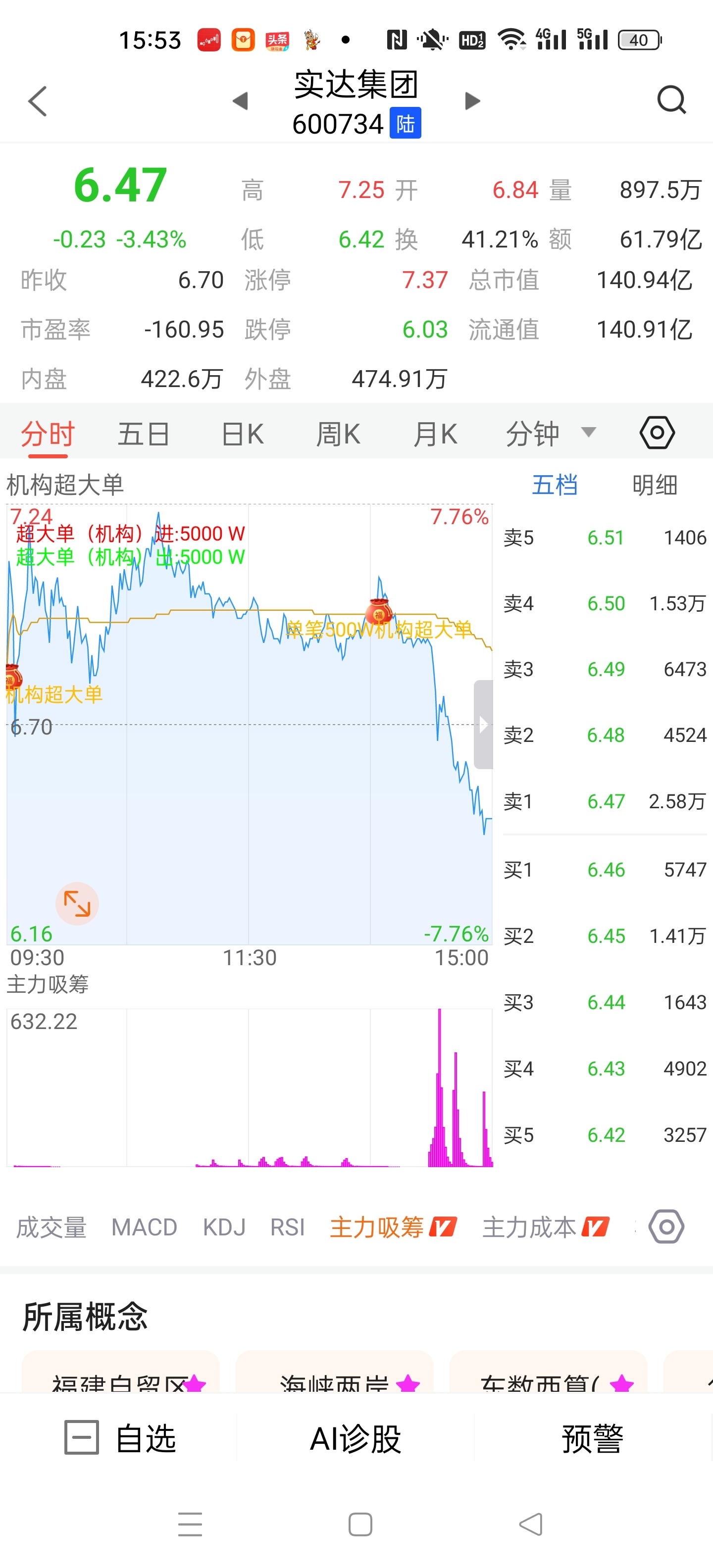 $实达集团(SH600734)$ 机构有维护股价想拉起来的,估计量化砸盘的。