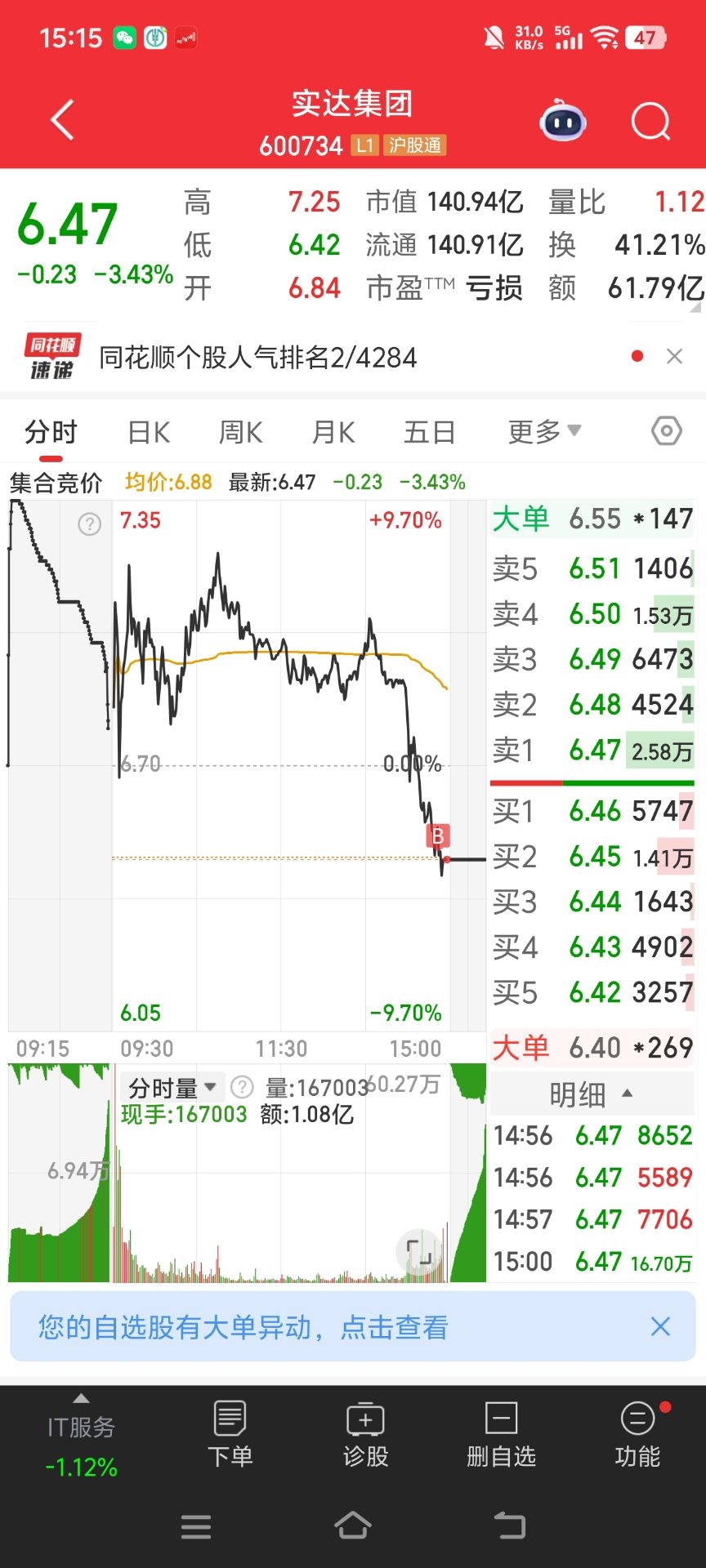 $实达集团(SH600734)$ 休息了两天,今天终于出手两次小试牛刀!我的模式就是等一个急跌,今天这两只票符合,但是身处情绪退潮期,因此仓位并不多。(个人投资记录,切勿模仿)。