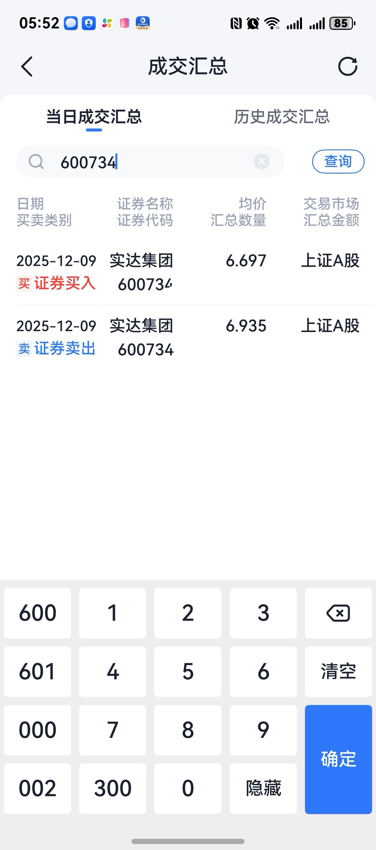 $实达集团(SH600734)$ 明宜高开在6.73附近。。。9点35分冲涨停。周三周四俩换手板?手中有仓肯定开心个,没的或今尾割的估计要来骂大街了。呵呵?。。娱乐而已。。。放松。今上午全清了。一直等6.5附近买入机会。急啊,怕买不到万一和周一一样尾盘涨停咋整?