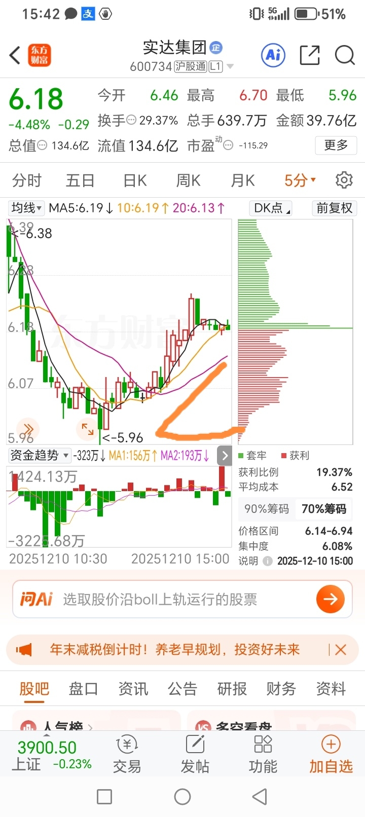 $实达集团(SH600734)$ 有资金午后温和吸筹!尾盘抢筹