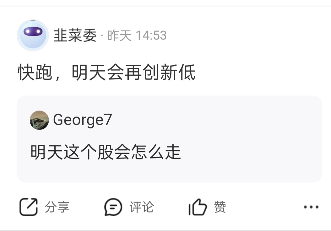 $实达集团(SH600734)$ 韭友们,怎么样!昨天听我话的昨天就直接跑了,杠精中一晚上有想明白的早上也会跑了,也能减少损失!剩下的,真是好言难劝蠢得死,不听别人话也就罢了,还反过来麻人,你不亏谁亏!明天虽然有概率会三阴返阳,但阳的高度肯定有限!
