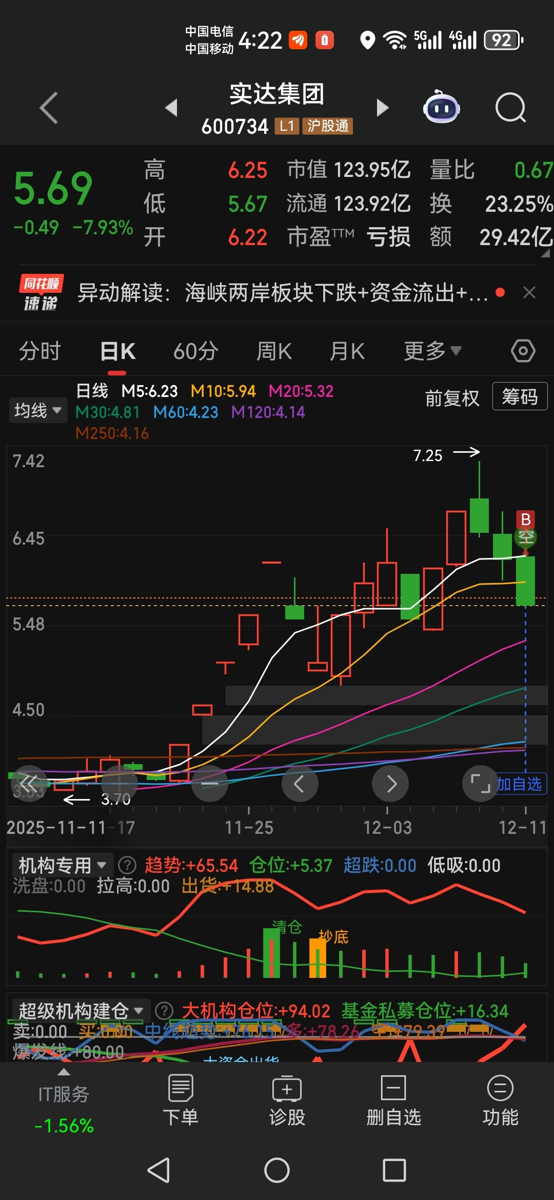 $实达集团(SH600734)$ 虽然没有抄到最低价,但明天绝对收红。甚至是涨停。