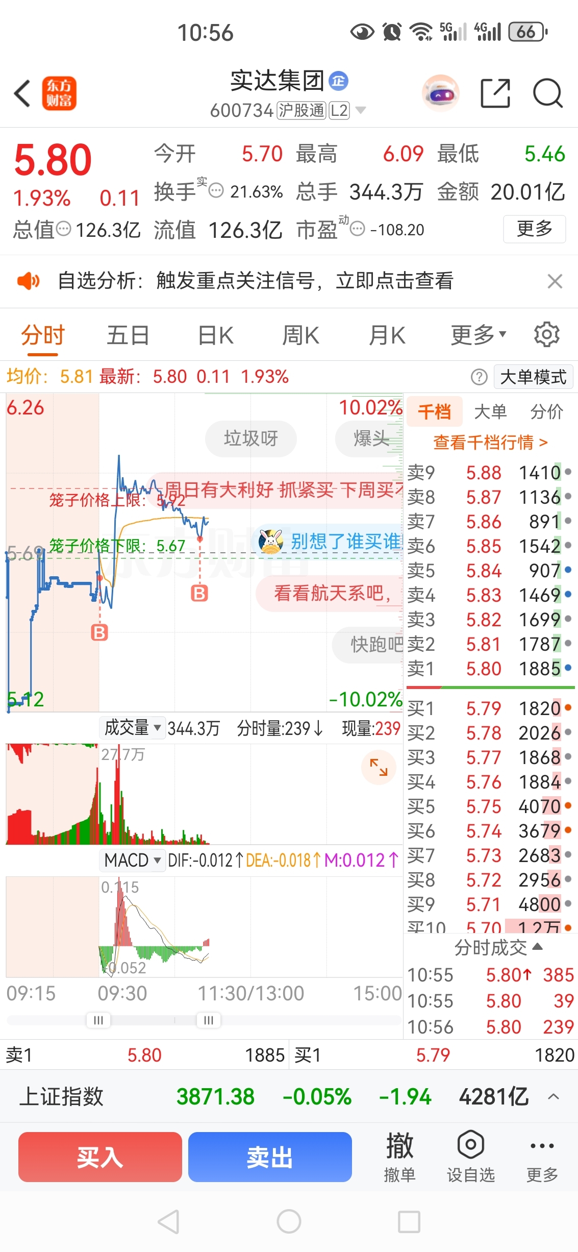 $实达集团(SH600734)$ 五块七四可以入手了,性价比很高,下午有可能反弹一下
