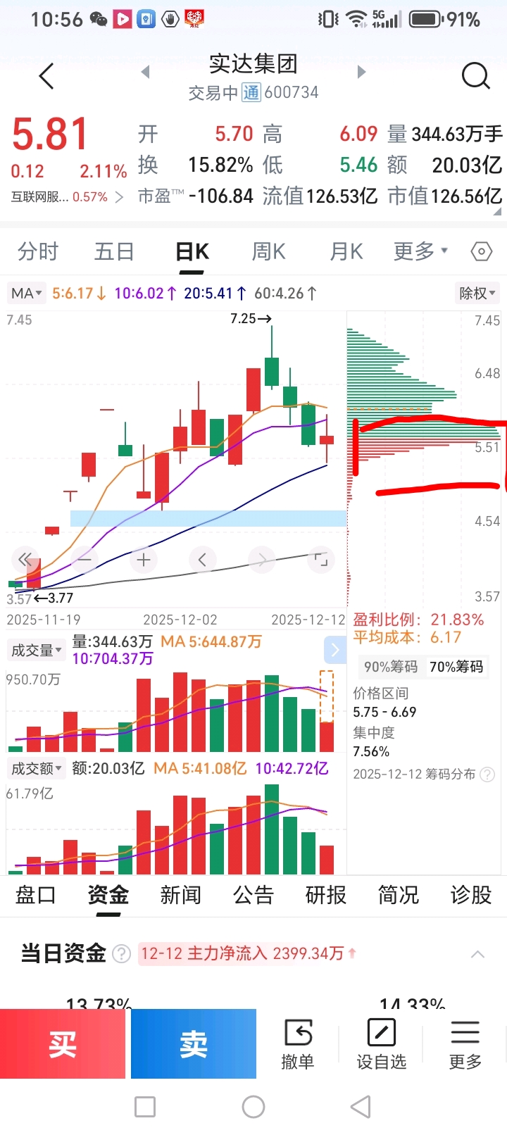 $实达集团(SH600734)$ 散户卖的被主力收集堆积于此!形成了一个主力成本堤高的新尖密集峰,平整且尖长