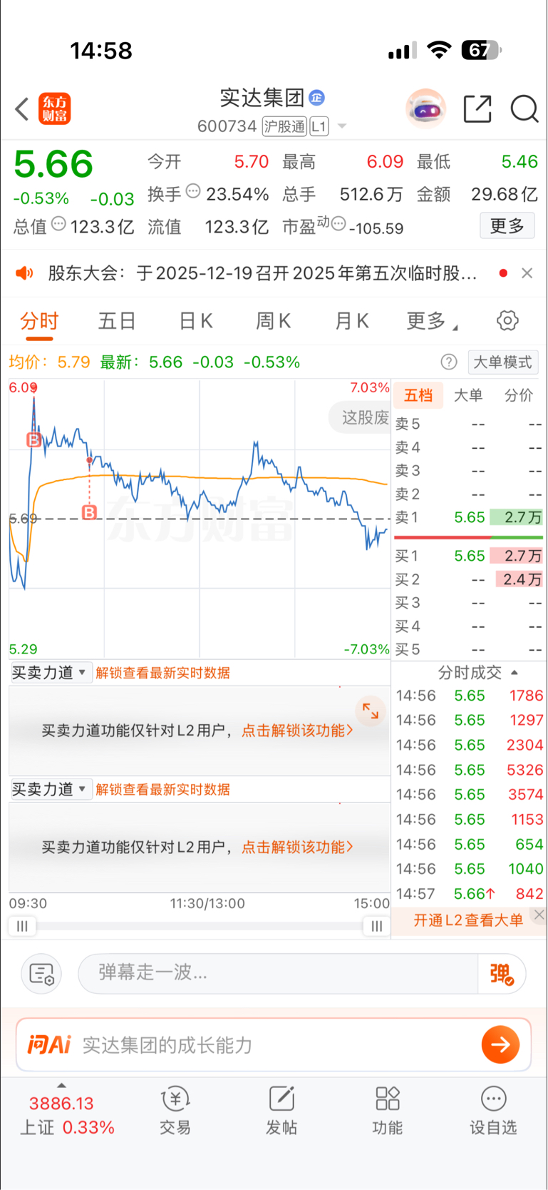 $实达集团(SH600734)$ 兄弟们赖我 我给买跌了