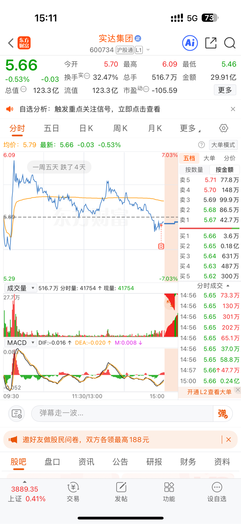 $实达集团(SH600734)$ 看了三天了,上车,下周一涨停,感觉来了