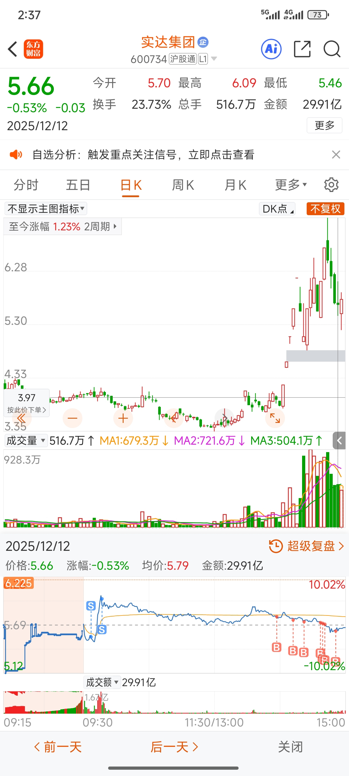 $实达集团(SH600734)$ 这货昨天就拉高,收盘收到水下的,今天还真说不好啊昨天买我都买高了一个点,今天看尾盘还要不要再来点反正现在仓位就十分之一
