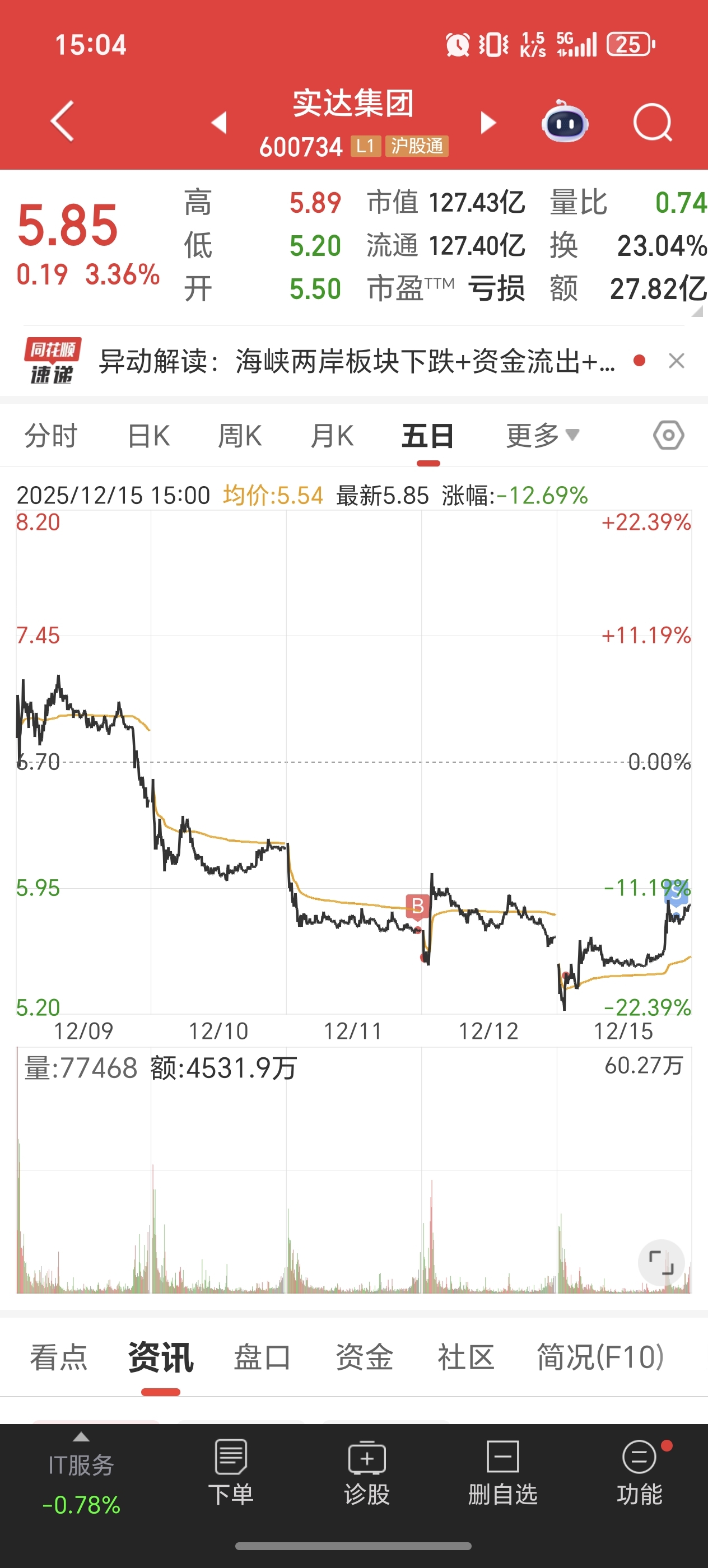 $实达集团(SH600734)$ 这家伙还好早晨没时间看你表演,不然早跑了