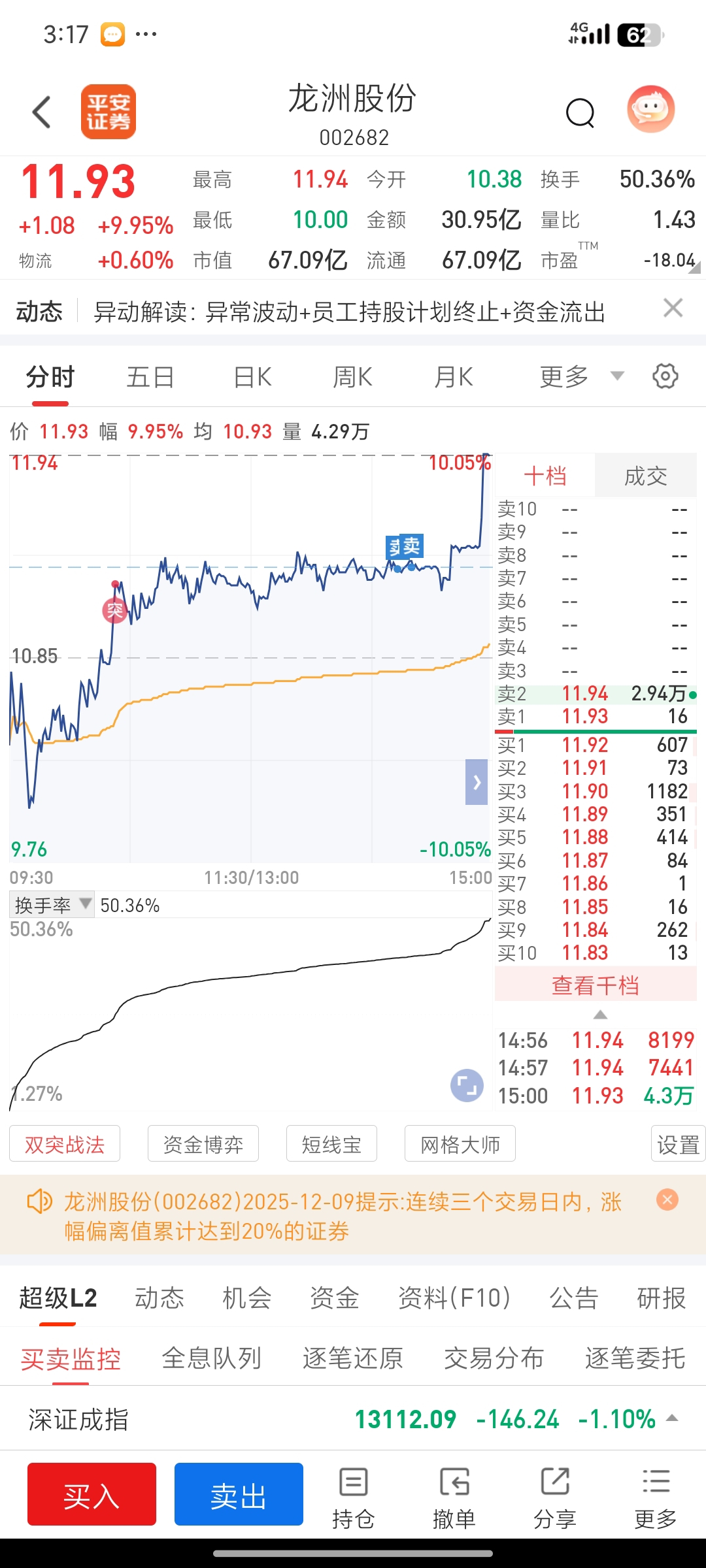 我是真的服了,龙洲拉那么晚的,本来我都挂涨停出的,实在是高啊