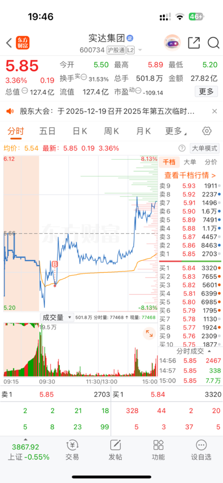 $实达集团(SH600734)$ 卖出龙头,干杂毛实达。明天拉高就砸跑路