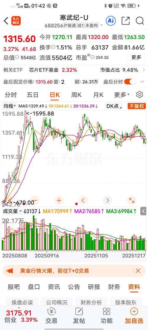 寒武纪–U是大A目前最高价且市值最大的算力+AI芯片概念股,它的劲暴市场表现已经成功指明了算力股价值潜力无限巨大。