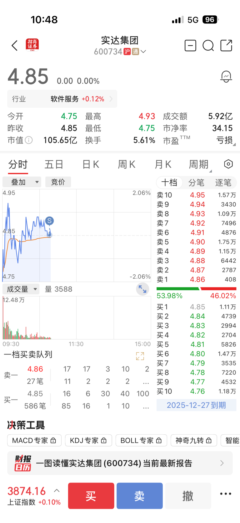 $实达集团(SH600734)$ 受不了了,割肉了,亏了5K