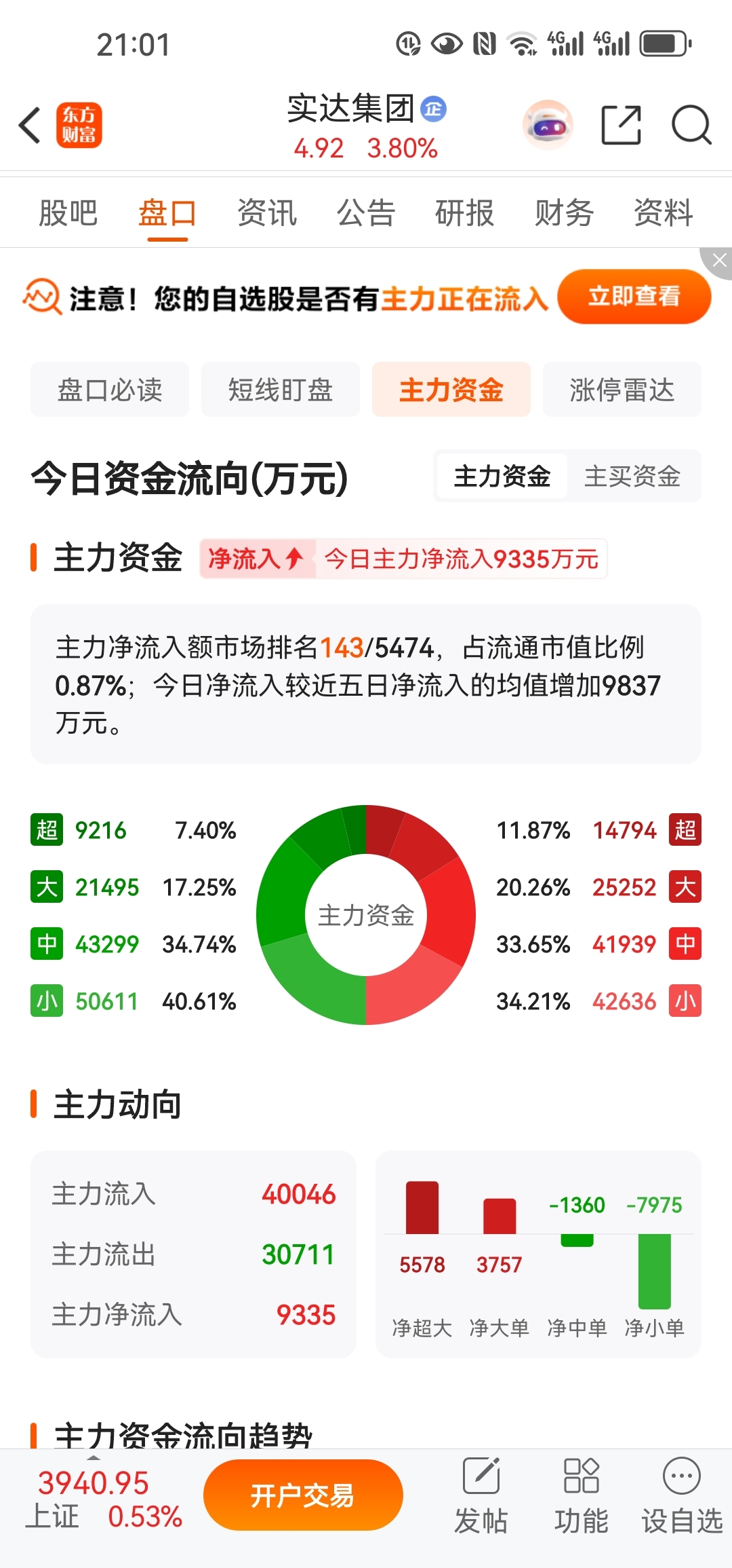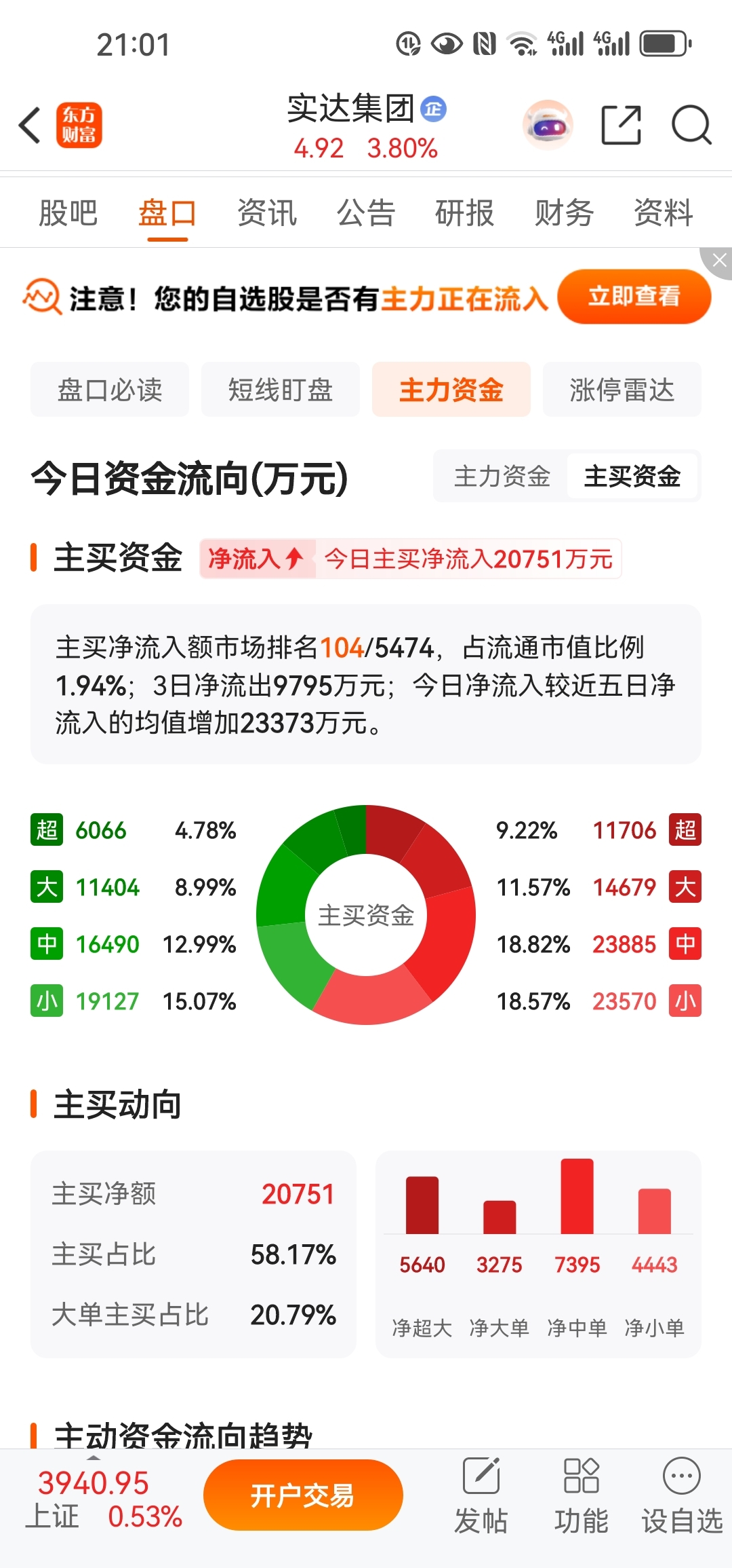 这是今天的主力资金和主买资金图,昨天资金流入排名好像是4900多名,明天能不能涨