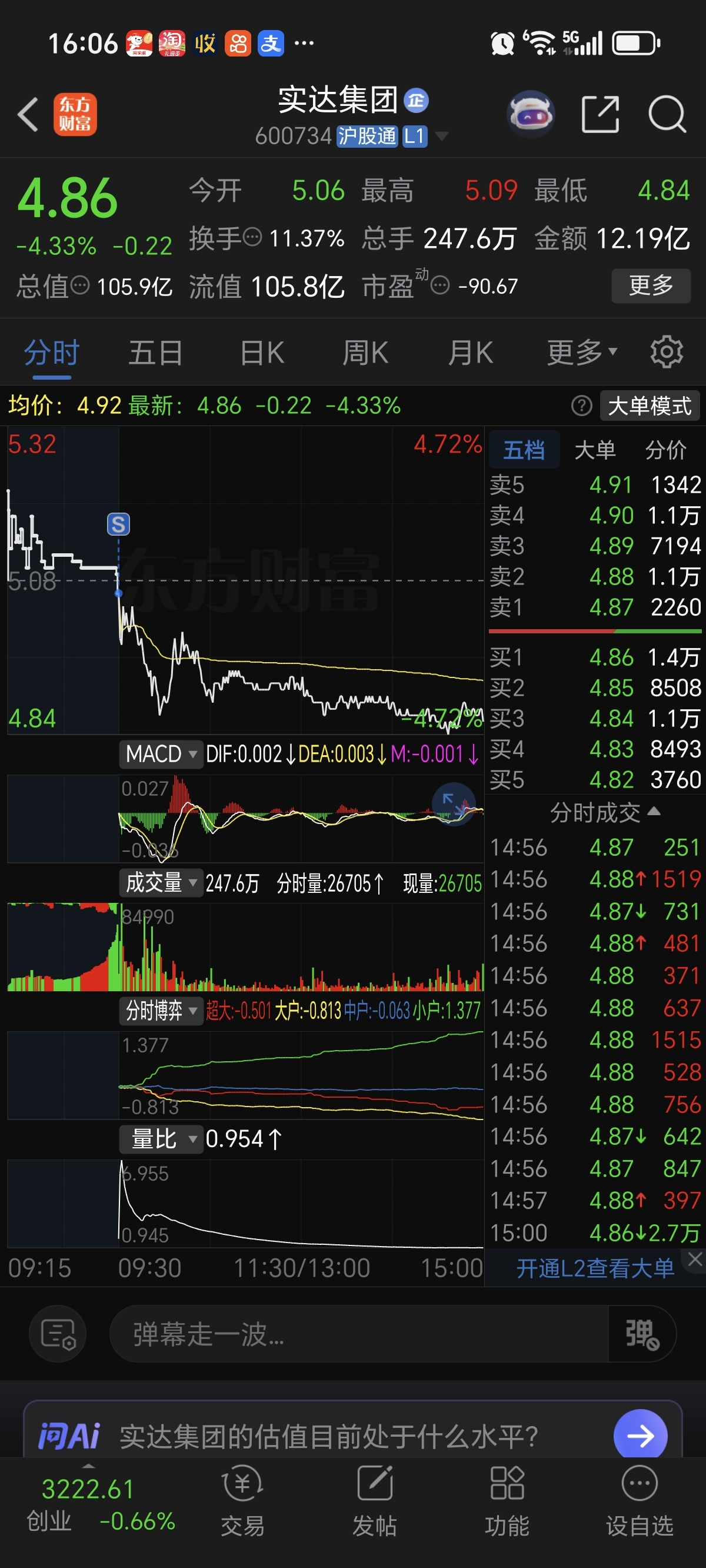 $实达集团(SH600734)$ 幸好今天跑的快,亏了45