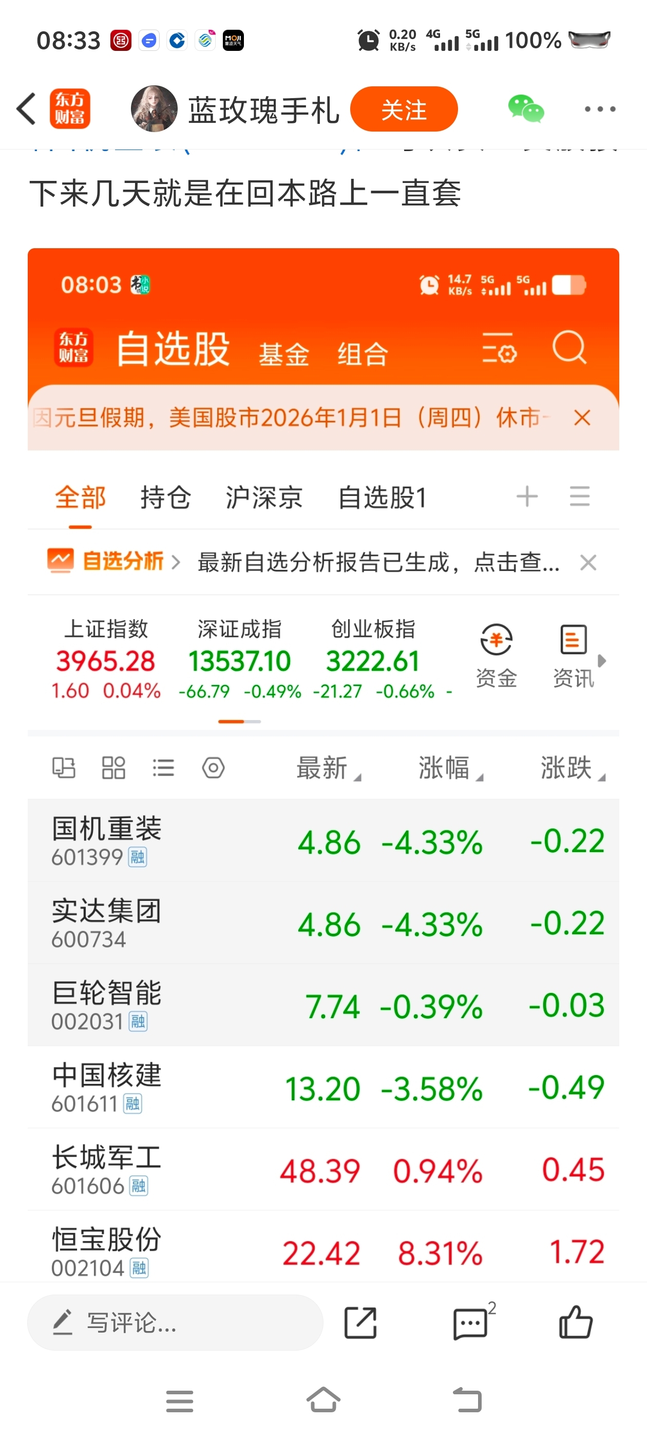 温馨提示: 1.根据《证券法》规定,禁止编造、传播虚假信息或者误导性信息,扰乱证券市场;2.用户在本社区发表的所有资料、言论等仅代表个人观点,与本网站立场无关,不对您构成任何投资建议。用户应基于自己的独立判断,自行决定证券投资并承担相应风险。《东方财富社区管理规定》