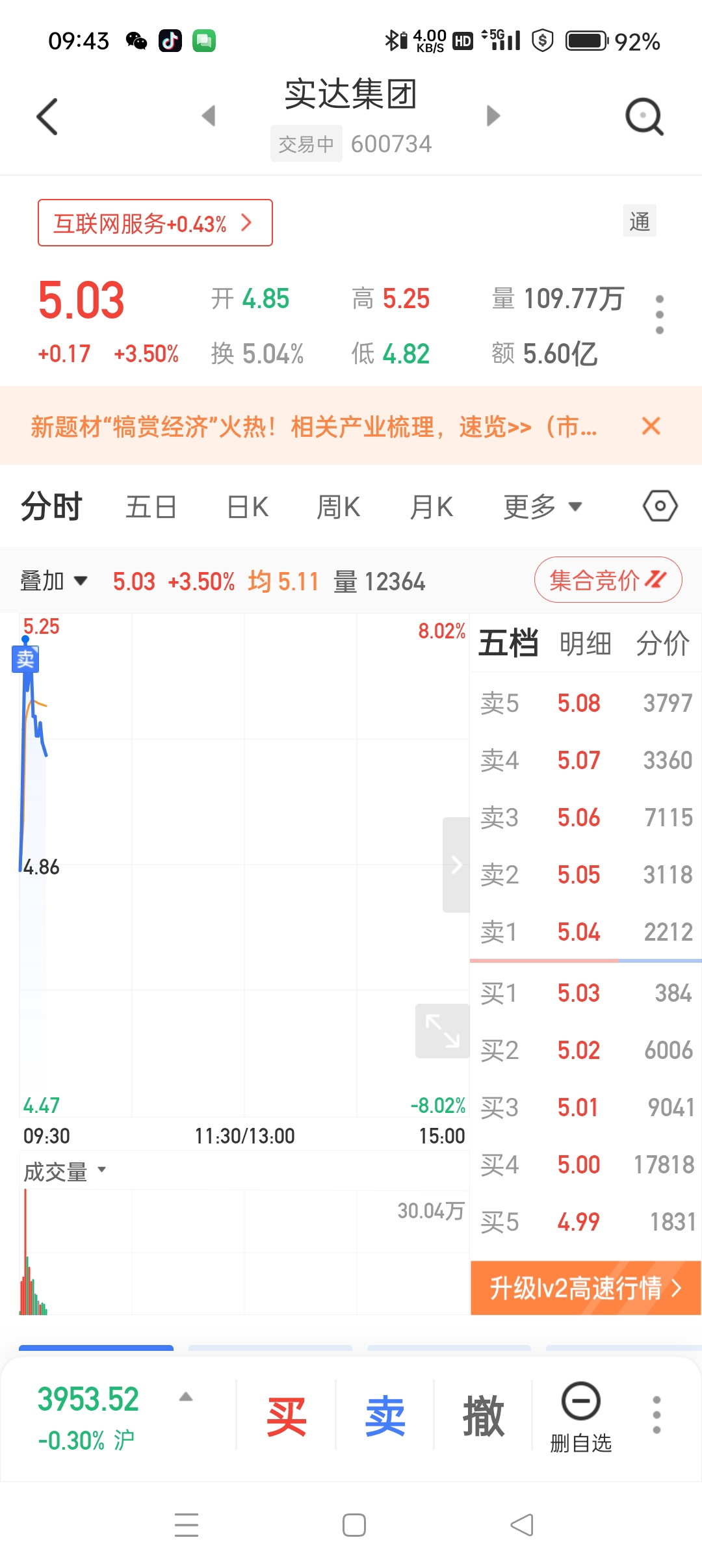 $实达集团(SH600734)$ 研究了下主力要过节回笼资金星期二必须拉诱多出货所以昨天尾盘4.87进来的,不然刚那波本来可以一鼓作气涨停的,看到下来了马上卖了!