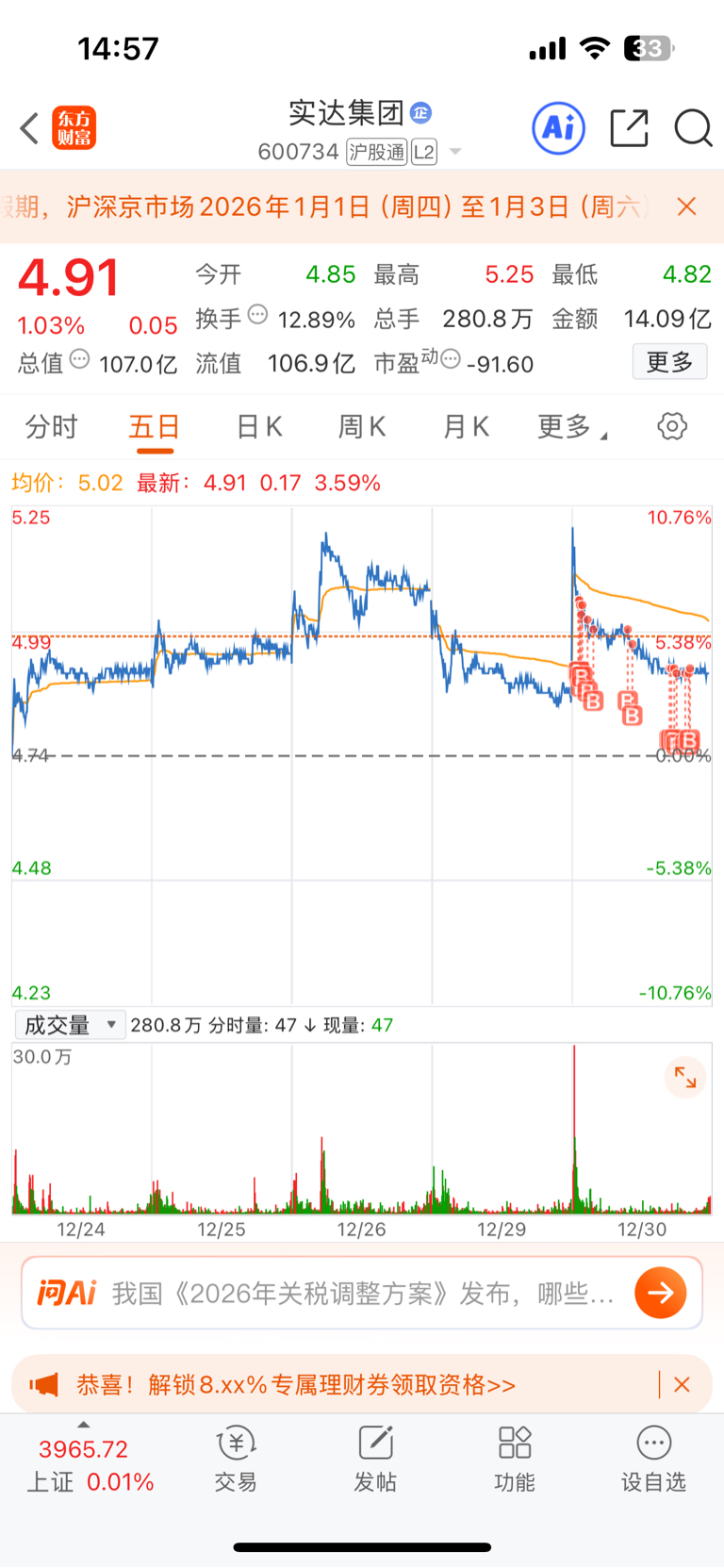 $实达集团(SH600734)$ 我也是服了,越b越低