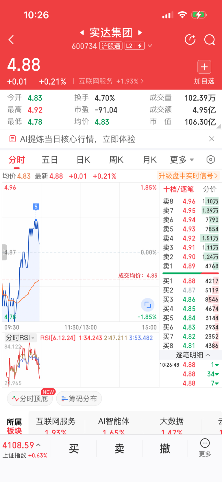 $实达集团(SH600734)$ 昨天进,今天出,赚个手续费。