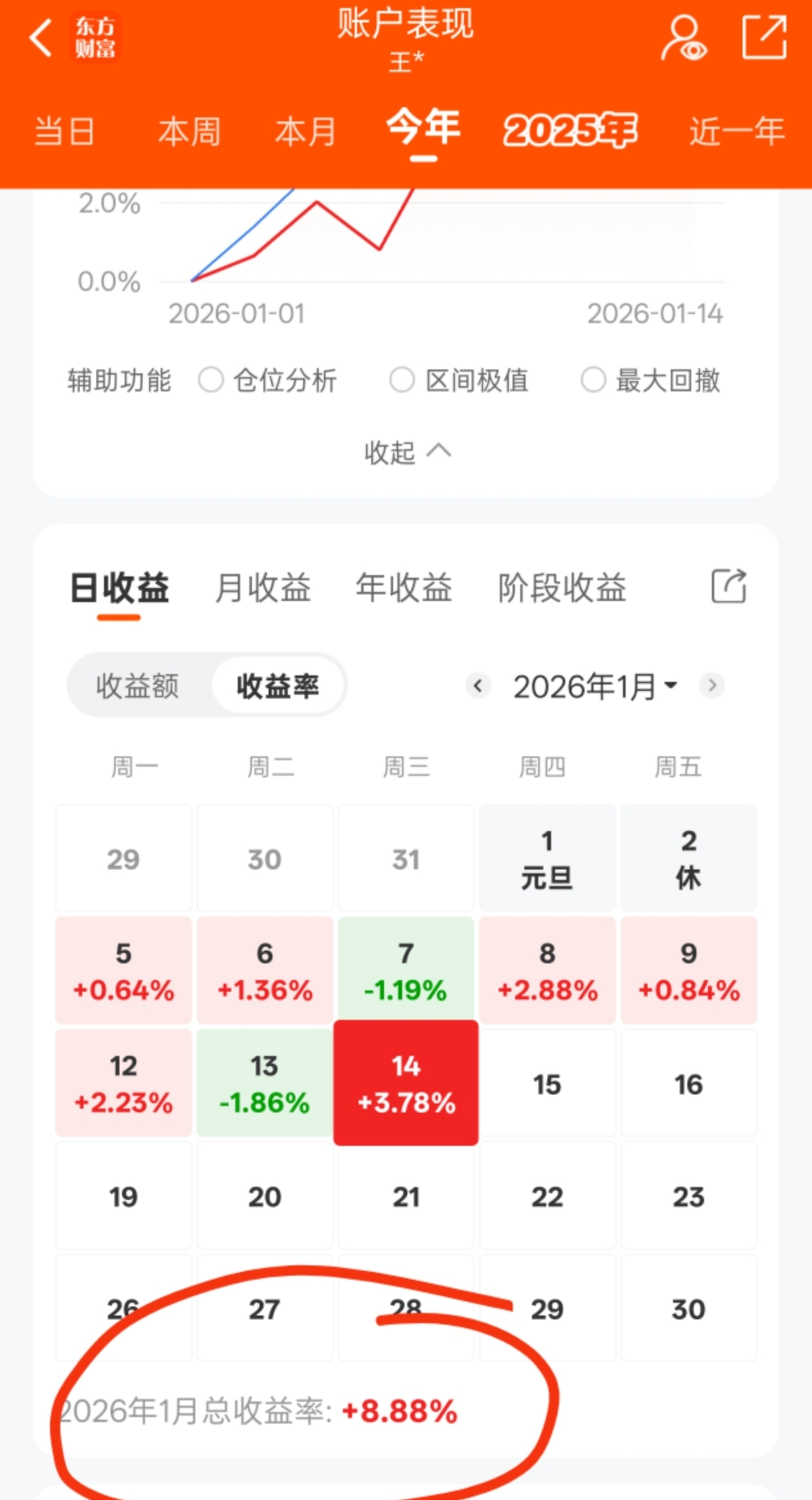 第八个交易日,收益率8.88%,哈哈哈。感谢主力