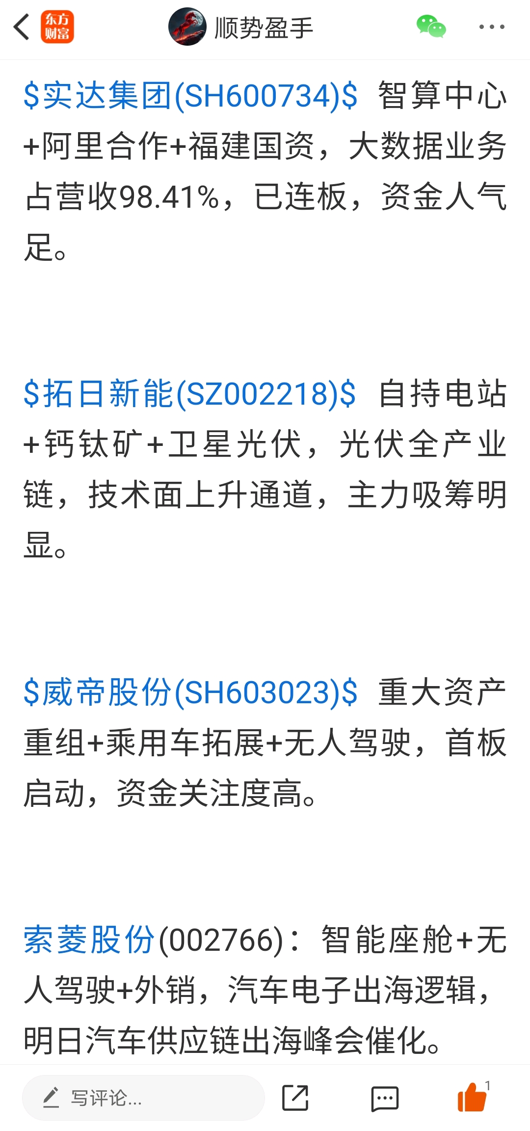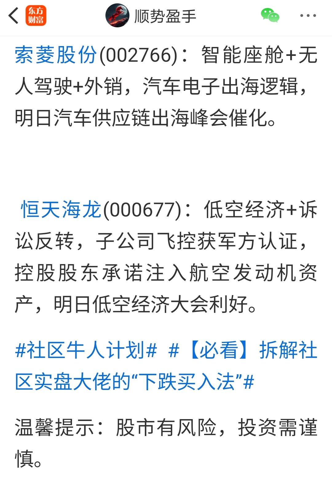 温馨提示: 1.根据《证券法》规定,禁止编造、传播虚假信息或者误导性信息,扰乱证券市场;2.用户在本社区发表的所有资料、言论等仅代表个人观点,与本网站立场无关,不对您构成任何投资建议。用户应基于自己的独立判断,自行决定证券投资并承担相应风险。《东方财富社区管理规定》