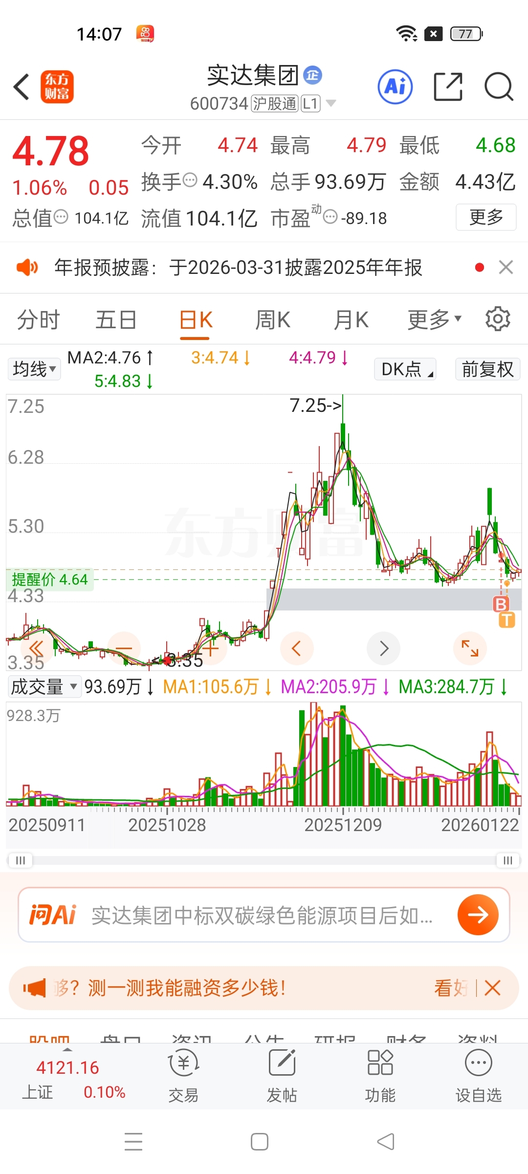 $实达集团(SH600734)$ 连续两个多头阳线,相信这是底部