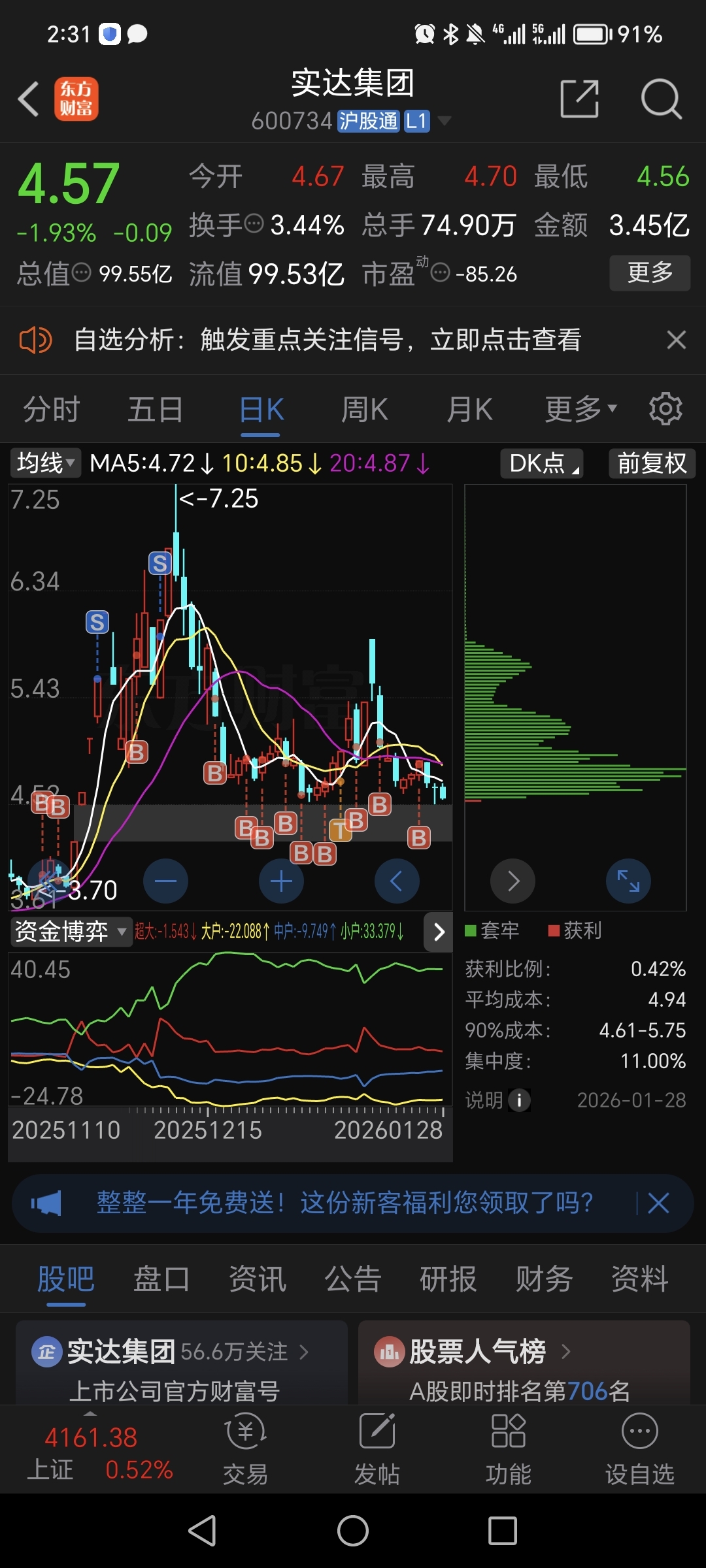 $实达集团(SH600734)$ 补不动了,前面一波赚40个点也快赔进去了
