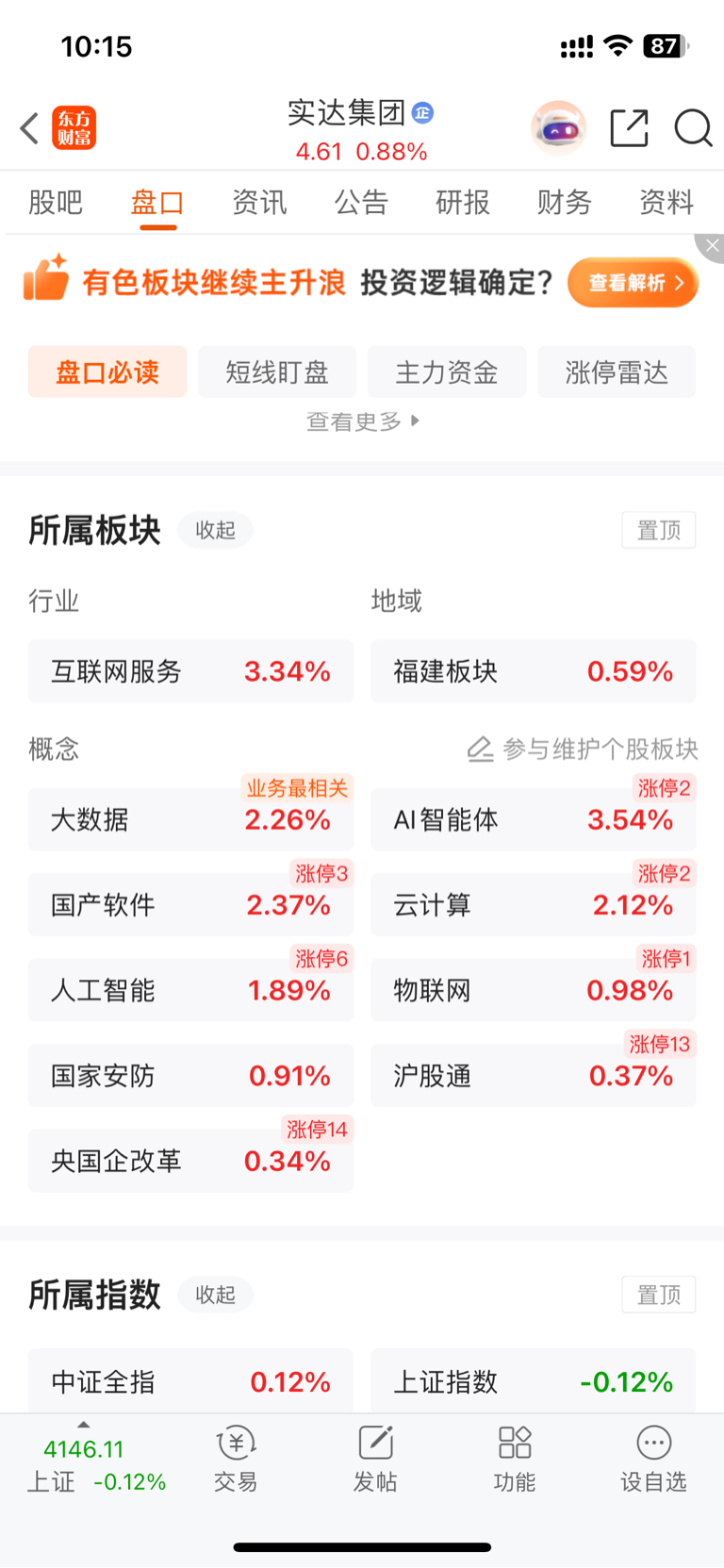 $实达集团(SH600734)$ 板块飞起来了,你这不到一个点