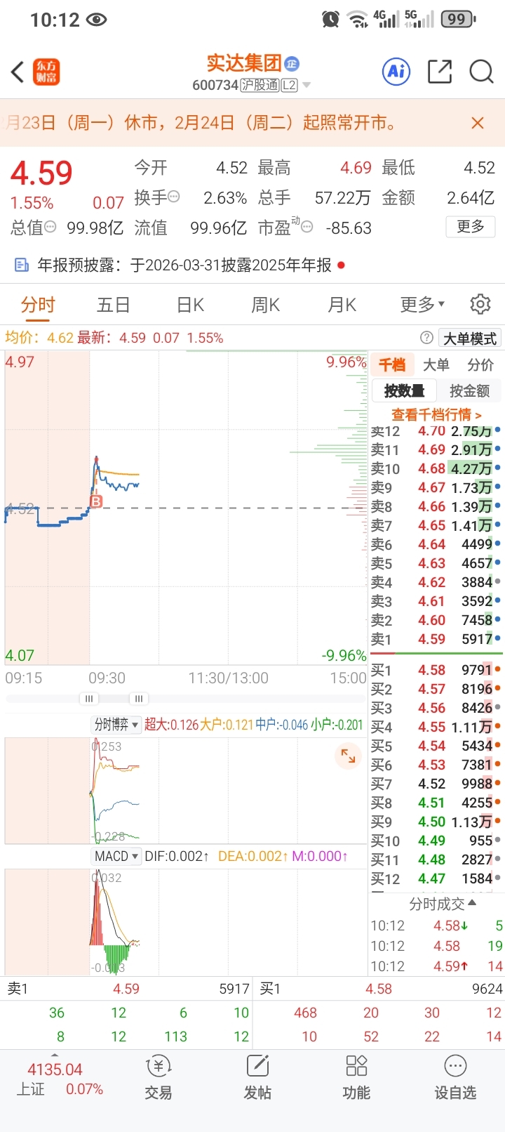 $实达集团(SH600734)$ 看了几天出手就套么