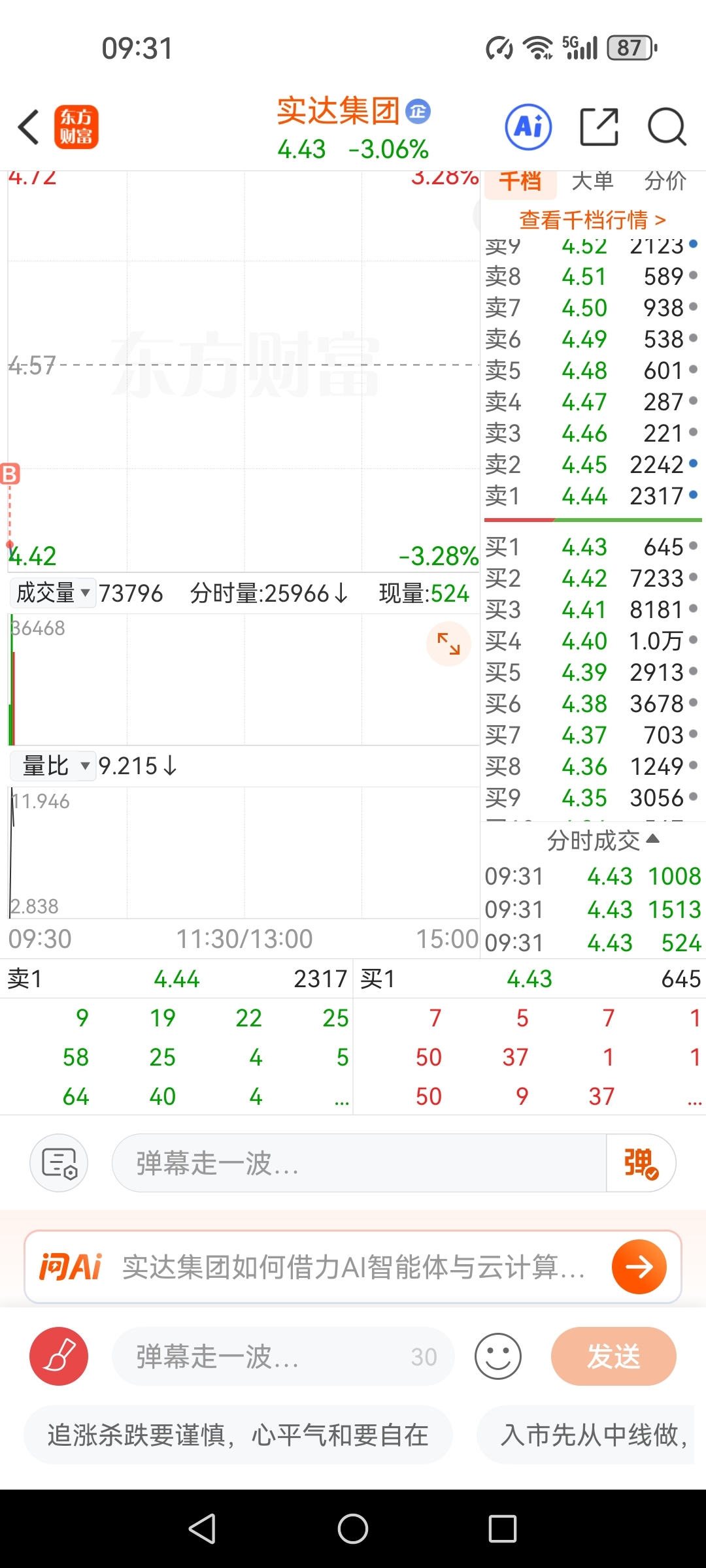 $实达集团(SH600734)$ 成本4.44买几万试试