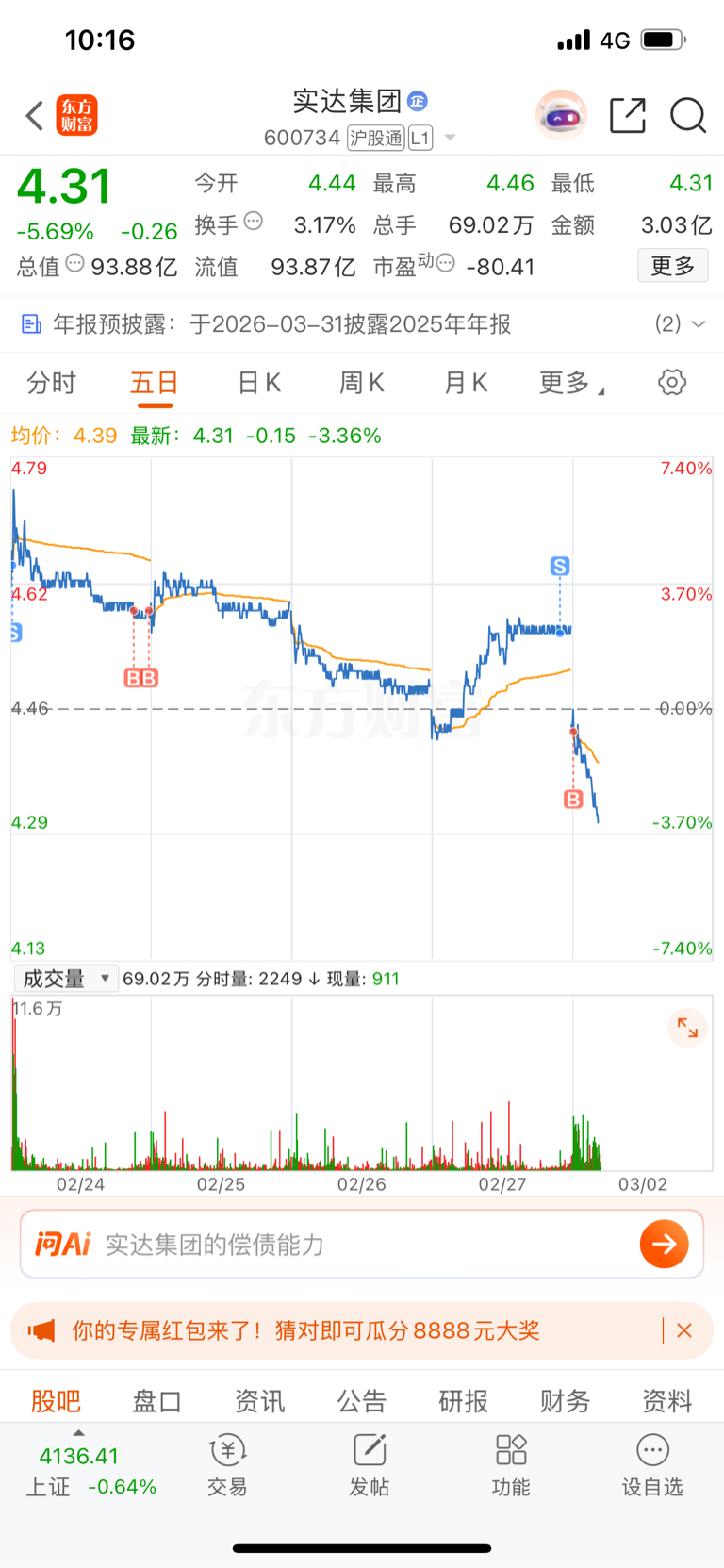 $实达集团(SH600734)$ 上周清掉,这周买回,买早了
