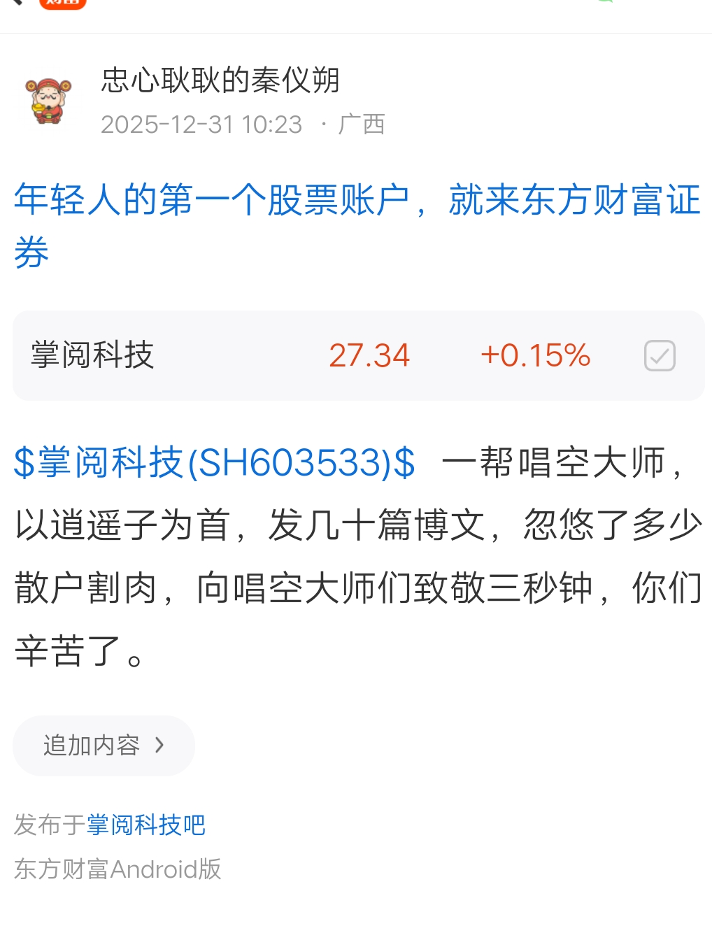 温馨提示: 1.根据《证券法》规定,禁止编造、传播虚假信息或者误导性信息,扰乱证券市场;2.用户在本社区发表的所有资料、言论等仅代表个人观点,与本网站立场无关,不对您构成任何投资建议。用户应基于自己的独立判断,自行决定证券投资并承担相应风险。《东方财富社区管理规定》