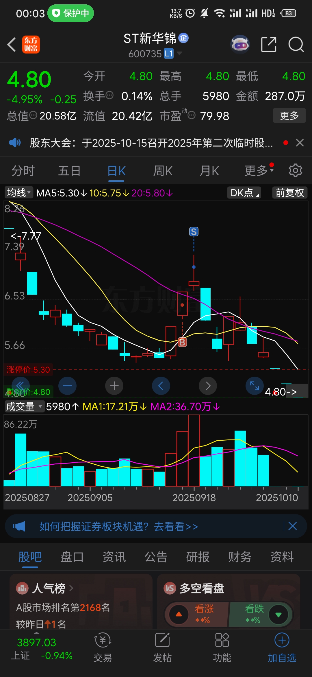$ST新华锦(SH600735)$ 这股票是真危险啊