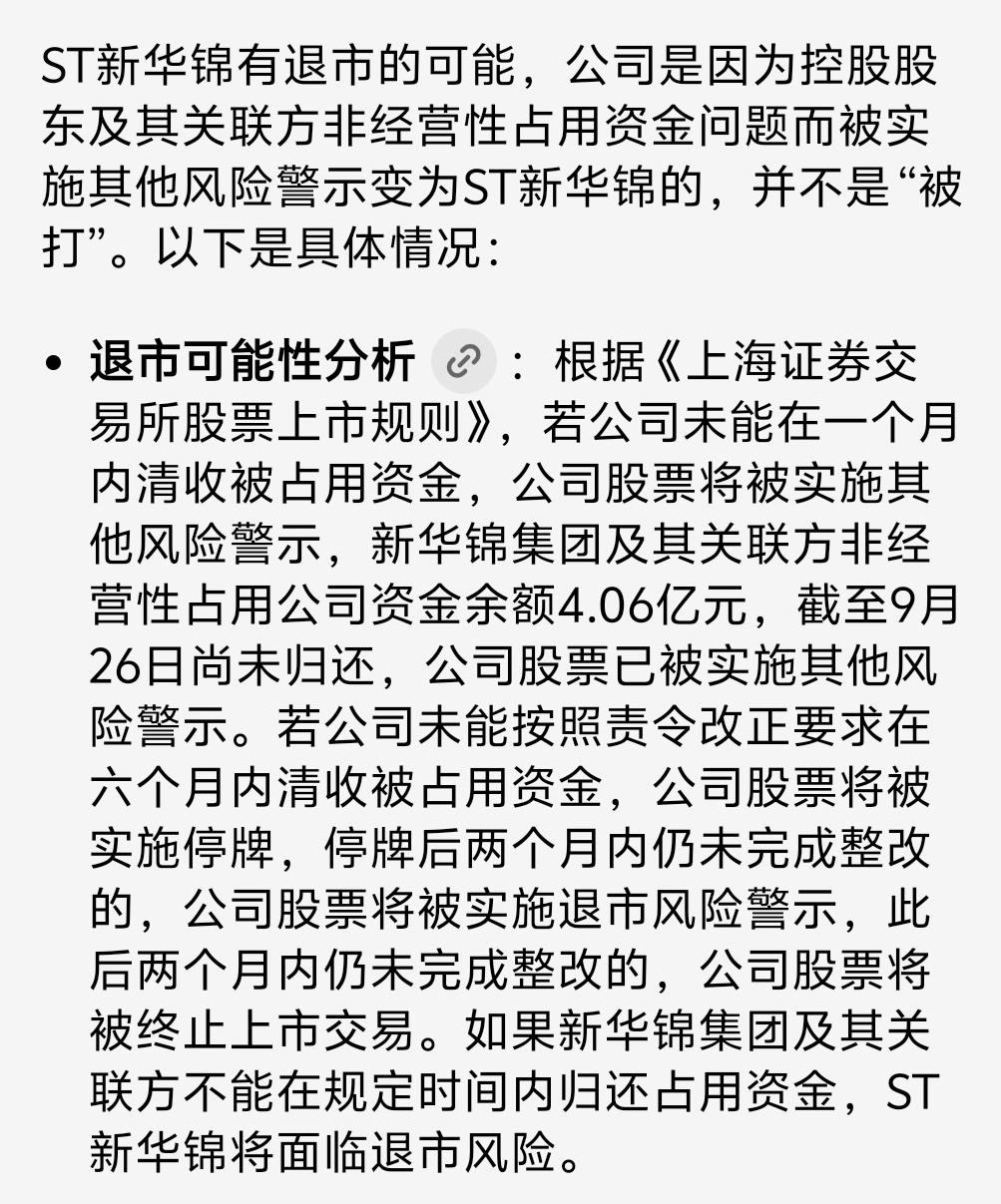 ST新华锦:公司财务很有可能叠加调查,钱还不上还要严查严办,极有可能退市。