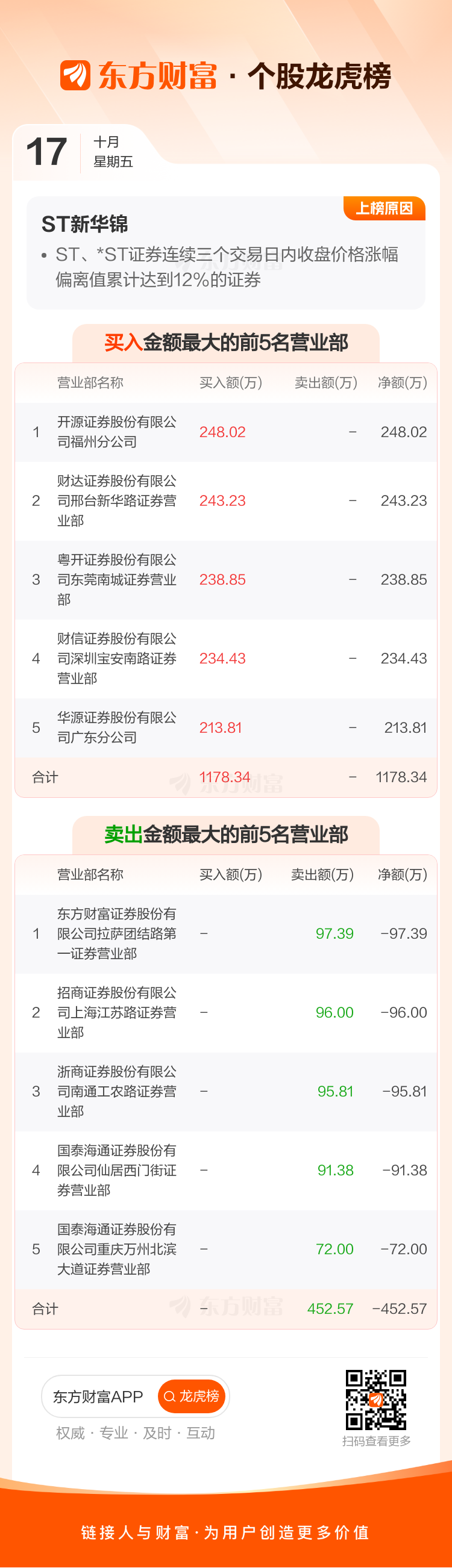 ST新华锦(600735)龙虎榜数据(10-17)