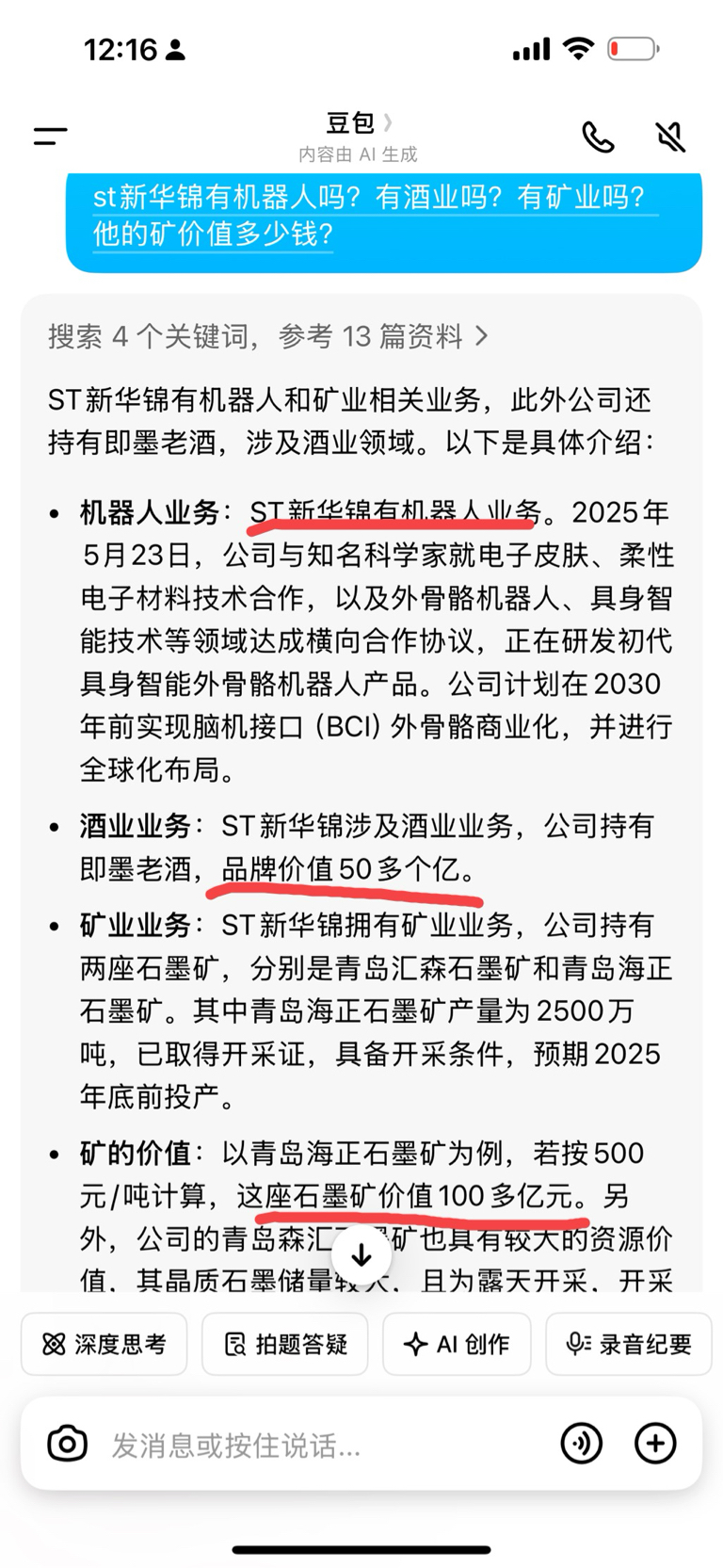 $ST新华锦(SH600735)$ 这是真的假的?酒业价值50亿,矿业价值100亿,那为什么公司市值才20来亿?