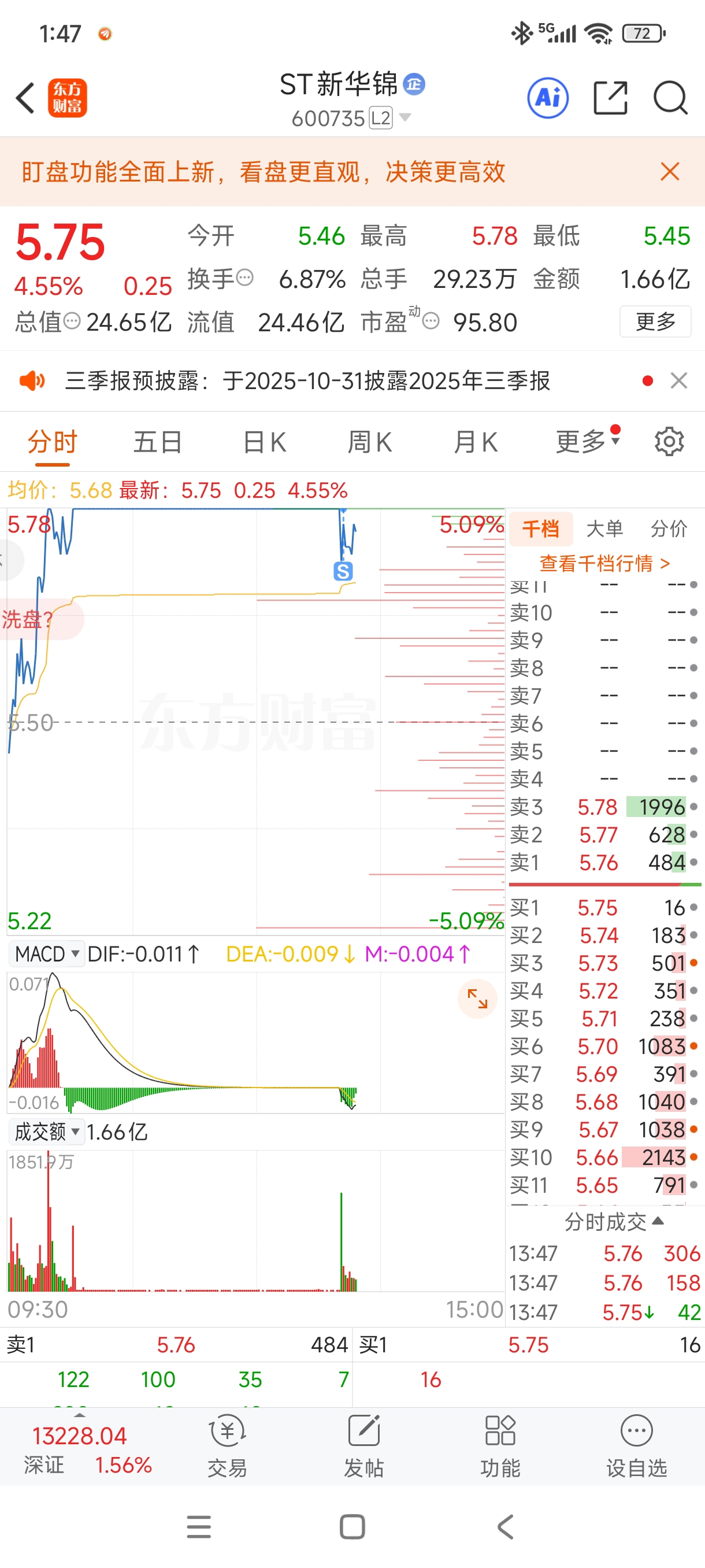 $ST新华锦(SH600735)$ 走了,下来在做T,卖飞就算了,祝大家发财