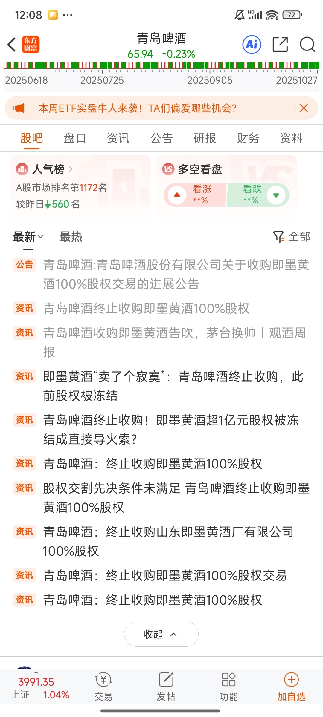 $ST新华锦(SH600735)$ 一直在犹豫要不要卖,手里有1万股,挣了7个点,风险太大了,一直在担心4.06亿何时能还,结果今天青岛啤酒又出了通知,终止收购新华锦集团的即墨黄酒。会不会是主力跑路哦!今天做了个t,卖不出去了,好担心。