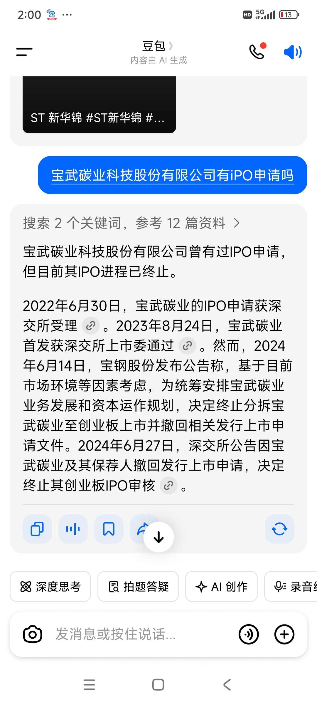 $ST新华锦(SH600735)$ 如果大股东的集团公司还不上4.06亿不排除宝武碳业科技会接手区区4.06亿宝武完全出得起这点钱不竟背后是宝钢这个大佬级实力强大!而且宝武碳业从2022年就谋求上市但可能出于排队太久放弃了,现在排队更久所以最快捷径是控股一家上市公司先,所以华锦机会极大可以实现资源整合加双赢局面!