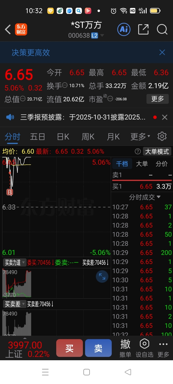 $*ST万方(SZ000638)$ 今天大盘重返久违的4000点,虽未站稳,但意思是会继续上攻,st板块强者恒强,己进入今年的收关战了,大家需把握住这,吃大肉的行情,今年账户有没有好的表现就看这最后2月了,本人今天收益目标70个,今天己完成!与大Ⅴ比勉强及格!好了,聊一下手中持有的7只个股!