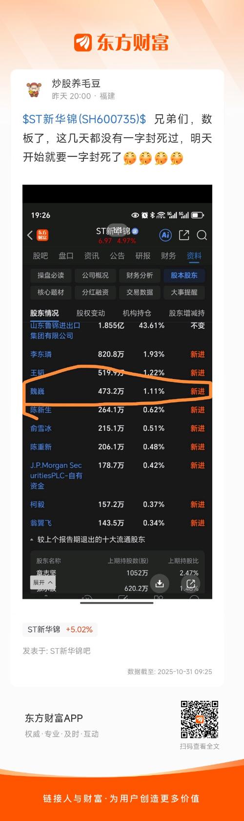 $ST新华锦(SH600735)$  兄弟们,数板了,这几天都没有一字封死过,明天开始就要一字封死了