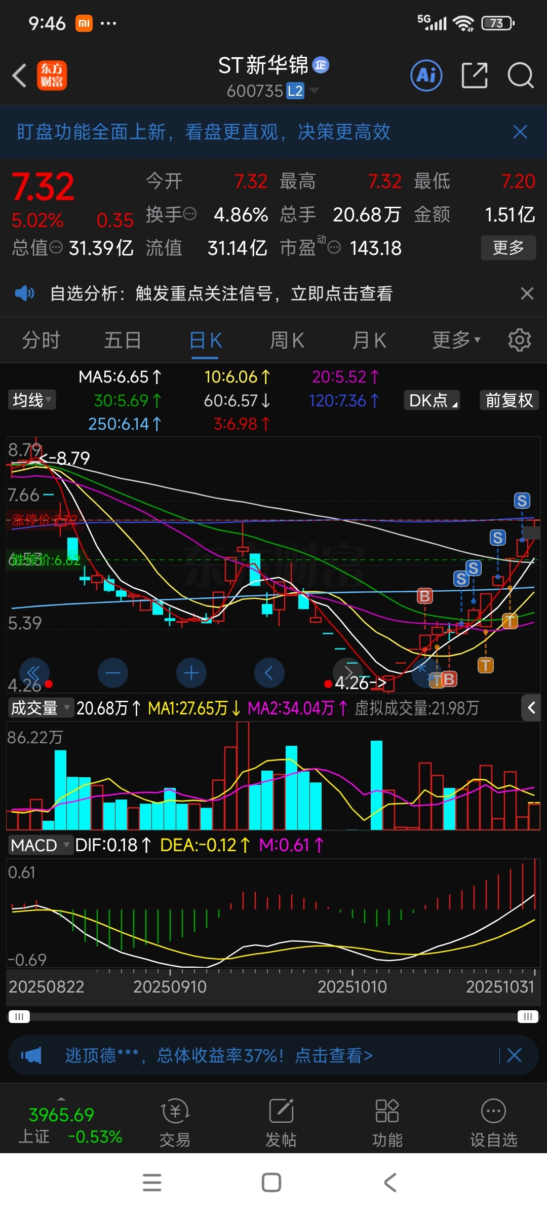$ST新华锦(SH600735)$ 天选韭菜,发现大牛股,不会玩。上周中途一度想过满仓,又畏手畏脚。现在只有10手了,拿着等摘帽吧