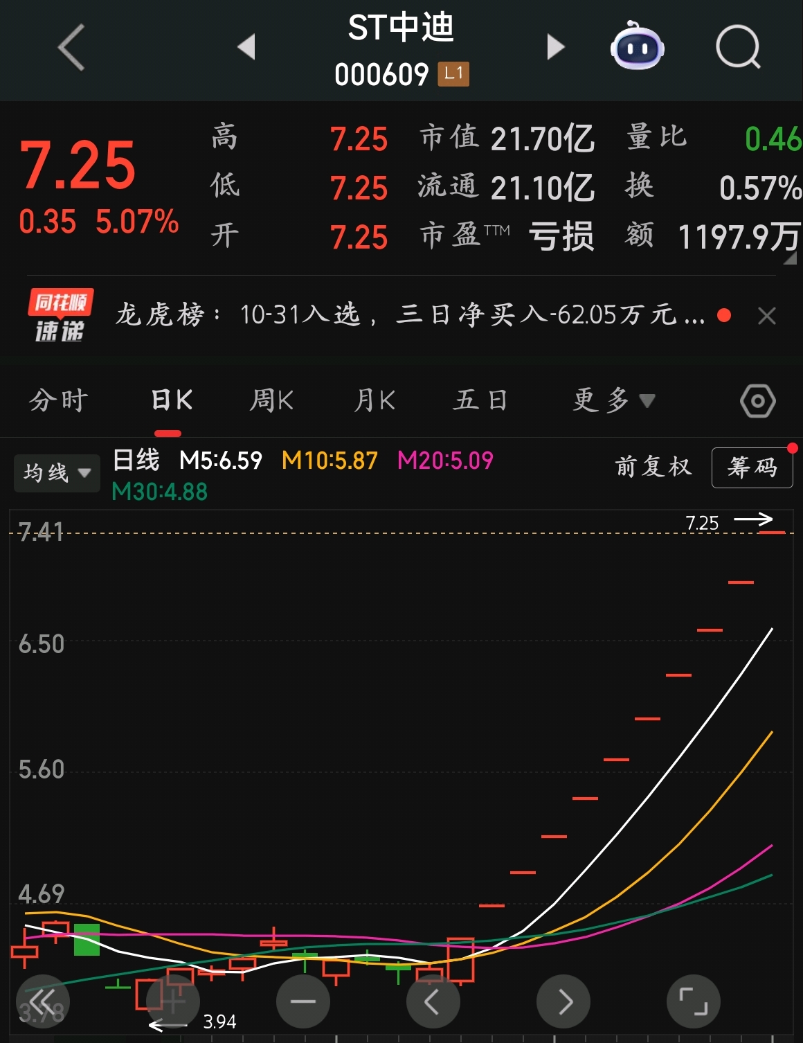 $ST新华锦(SH600735)$ 目前最吊的龙一连续11个一字板—中迪;锦子上周两天炸板如果封住也是11板,占榜龙二,11月阿迪与阿锦争夺龙一宝座!阿锦周一、二,一字开板,又会创造5连发战绩,保守股价创新高28问题不大!