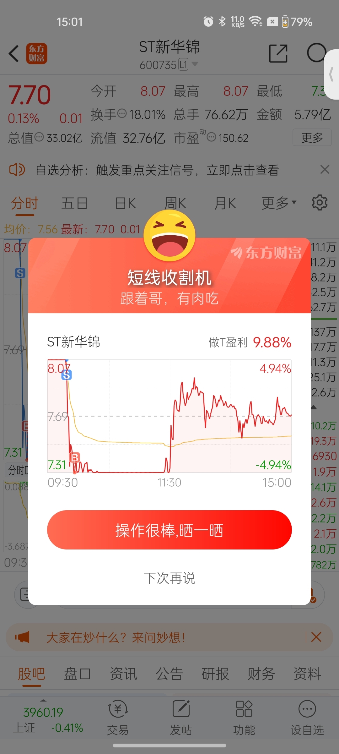 哎呀妈呀!做了个T!继续持有!