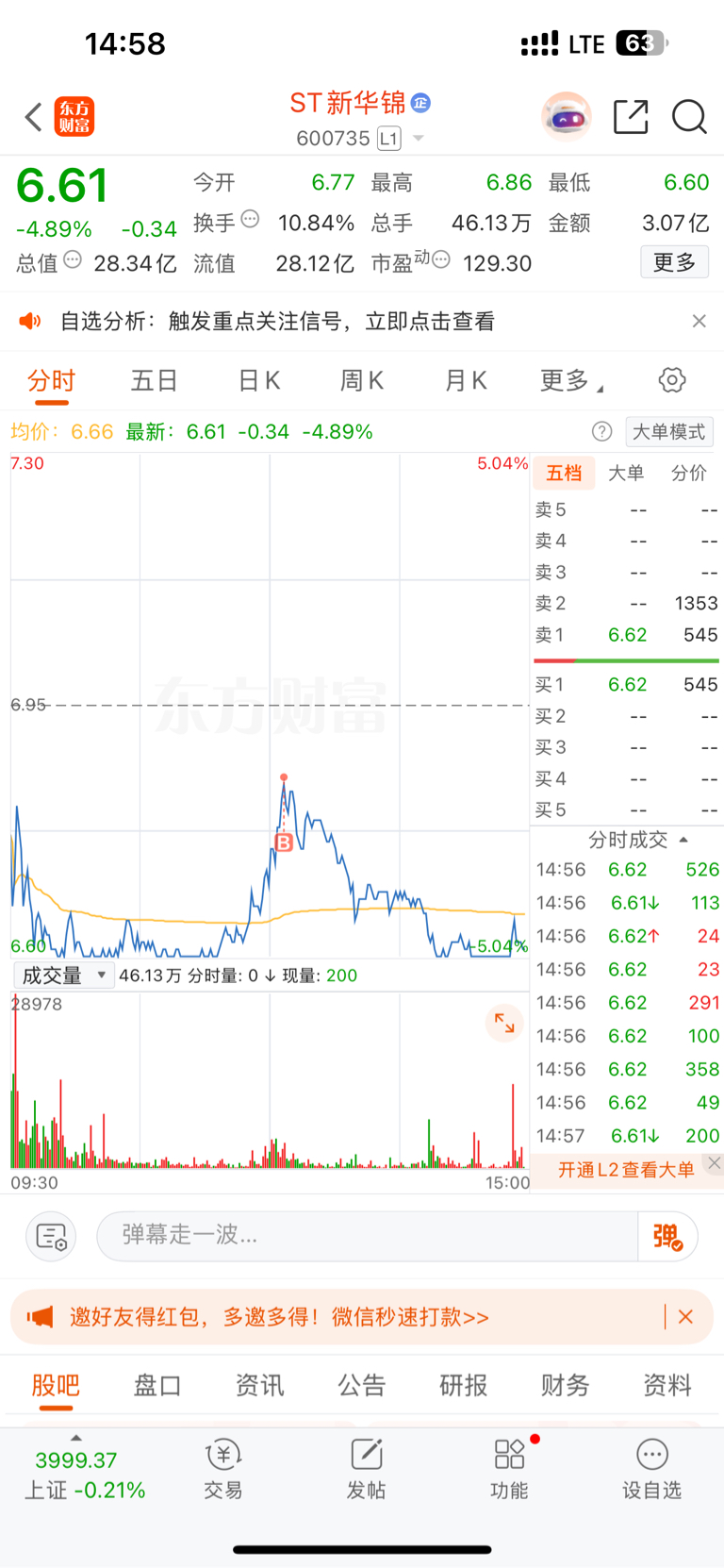 $ST新华锦(SH600735)$ 主力好手段,如果不是最高点我都不至于这么生气