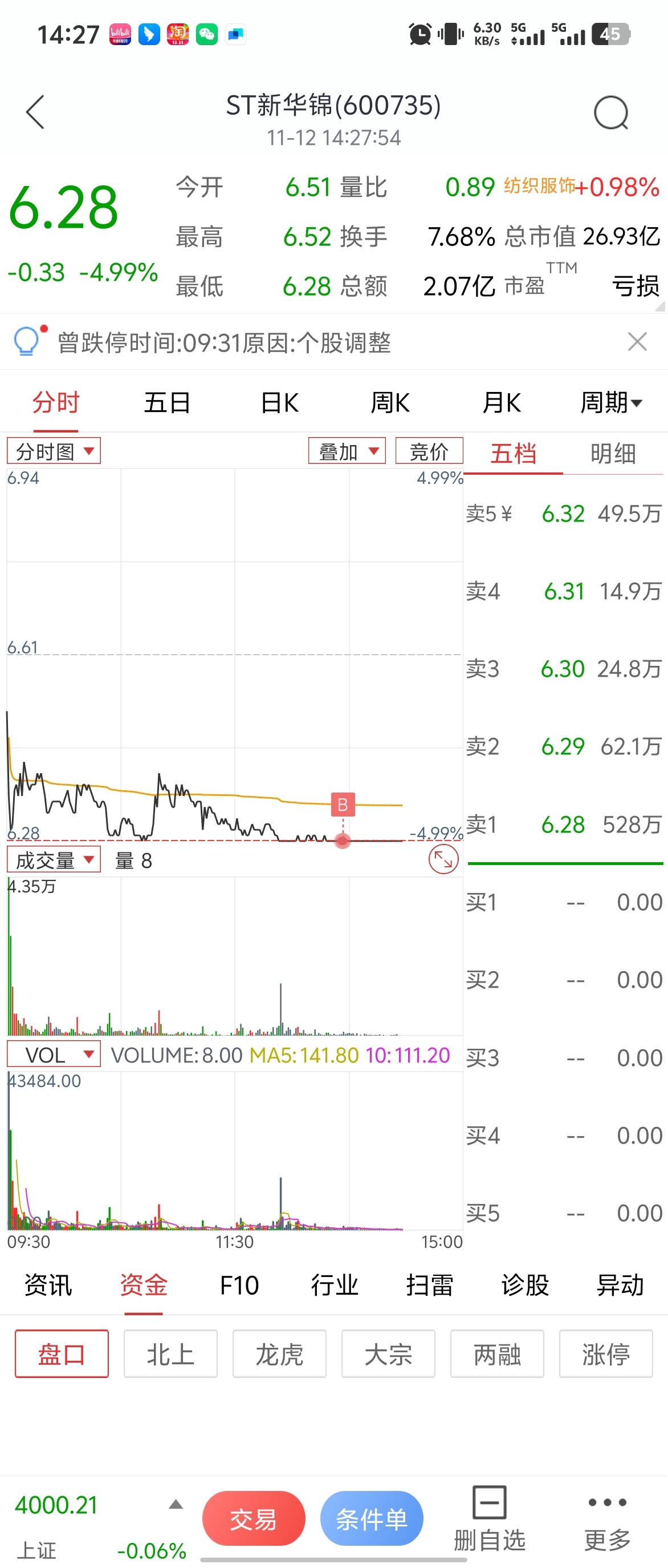 $ST新华锦(SH600735)$ 剩下10%仓位,地板接了3%新华军,明后天如果依然保持水下择机抄底